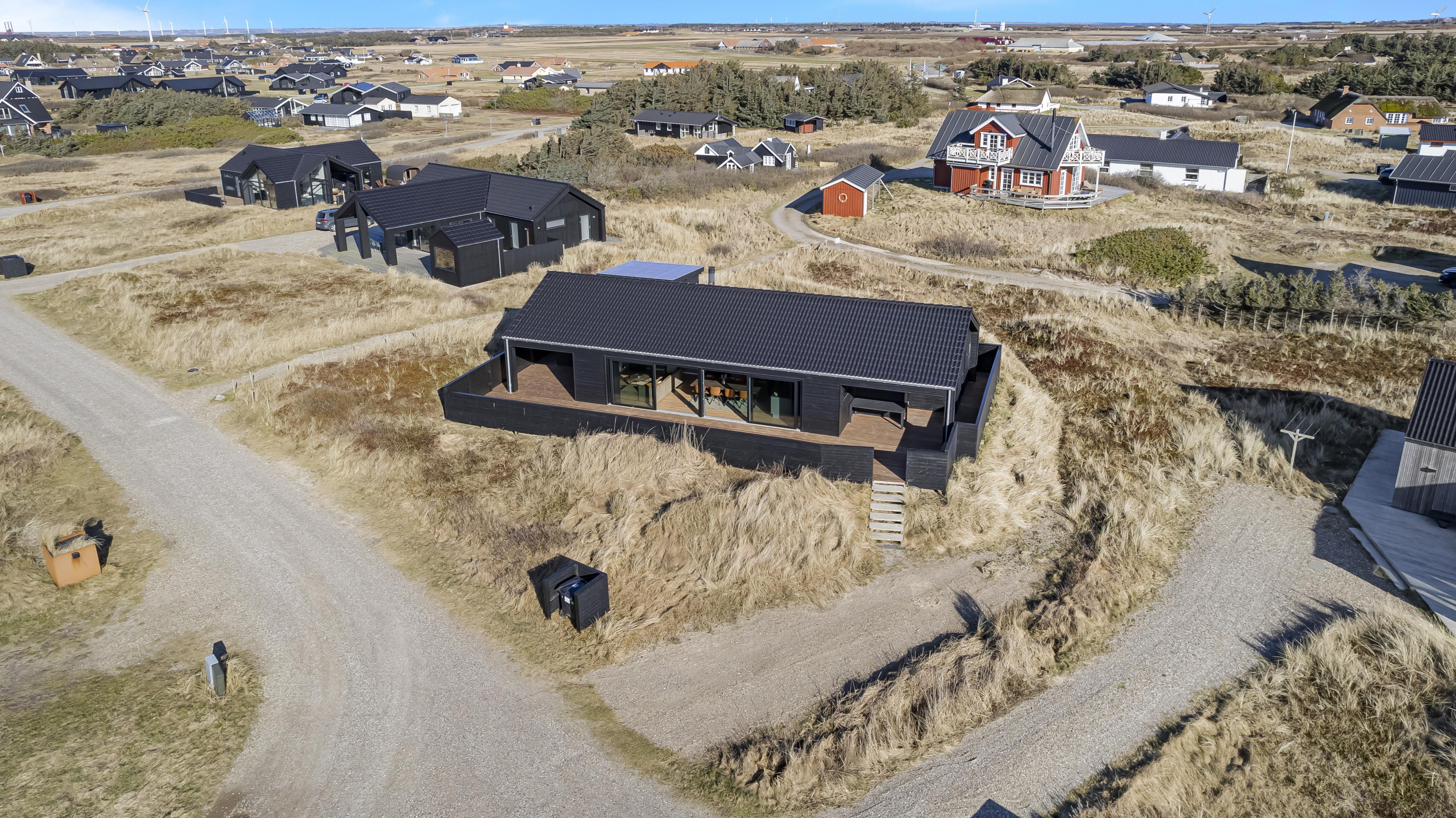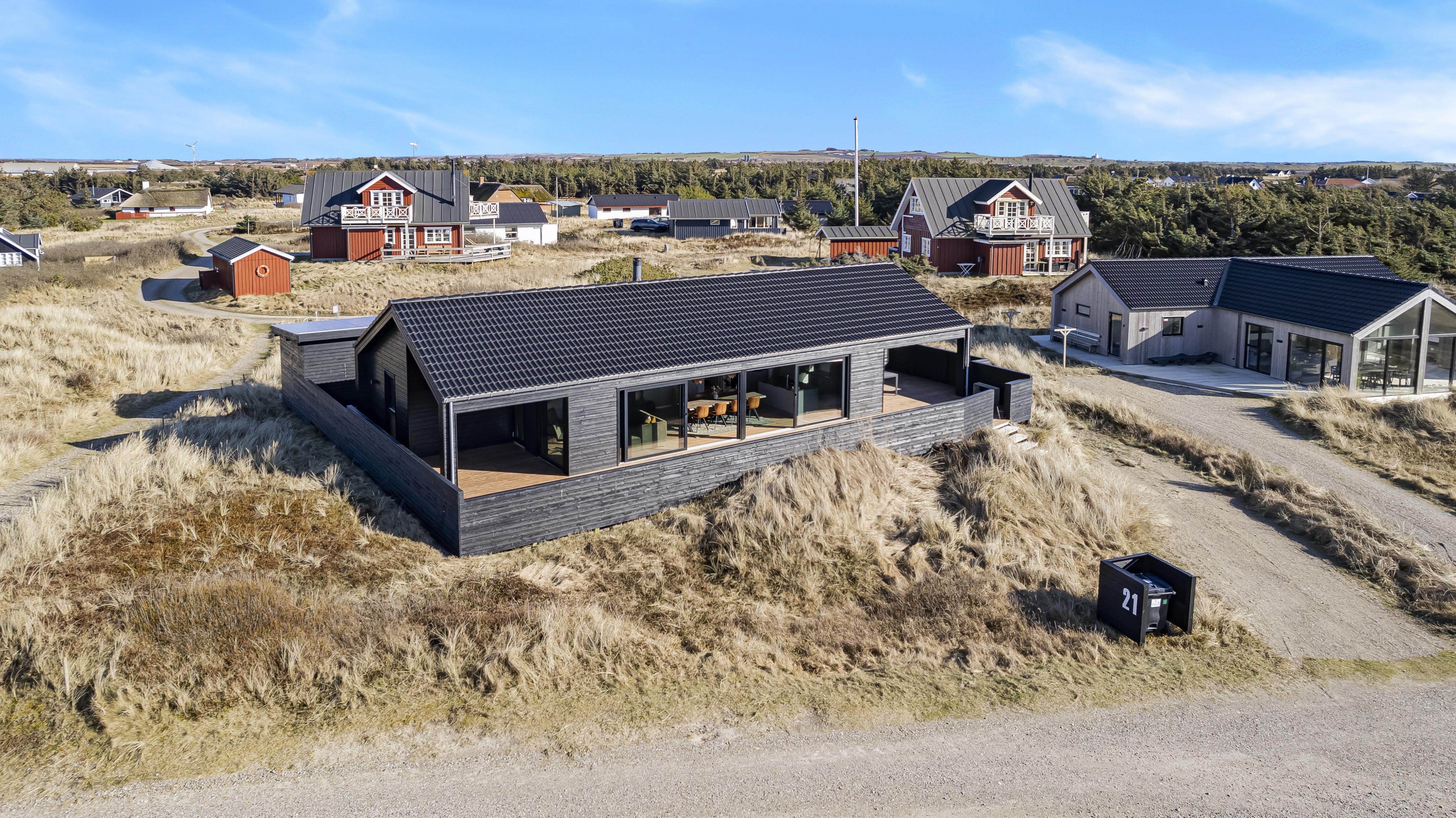 Dieses neu gebaute Ferienhaus mit 110 qm ist sehr gut ausgenutzt mit z.B. großem kombinierten Küchen/Wohnraum. Es vermittelt das Gefühl, als Familie zusammen zu sein, unabhängig davon, ob eine Person in der Küche steht und der Rest der Familie auf dem weichen Sofa faulenzt. Die Decke ist hoch, denn das Haus hat eine schräge Decke, die das Haus besonders geräumig macht. Die große Fensterpartie zu den Dünen sorgt für einen tollen Lichteinfall und es scheint wie eine lebendige Malerei. In der gut ausgestatteten Küche finden Sie alle Gerätschaften, die notwendig sind, um Essen zu kochen, z.B. Cerankochfeld, Abzugshaube, eingebauten Ofen, Mikrowelle, Kühl-/Gefrierschrank und natürlich auch einen Geschirrspüler. Der große Esstisch ist in Verbindung mit der Küche platziert, von wo Sie auch den großartigen Blick genießen können. Der Couch-Bereich verfügt über einen Smart-TV mit dänischen und deutschen Programmen; es gibt außerdem auch Glasfasernetz im Haus. Bei windstillen und sonnigen Tagen gibt es die Möglichkeit, die große Fensterpartie zu öffnen, so dass die Natur wirklich in das Haus kommt und ein Teil vom Haus wird. Das Haus ist hat 2 Badezimmer, beide sind mit Toilette, Waschbecken, Dusche und Fußbodenheizung ausgestattet. Wenn Sie sich verwöhnen lassen möchten, gibt es im großen Badezimmer einen wunderbaren Whirlpool. Das Ferienhaus hat 4 gute Schlafräume: 1DB + 1DB + 1DB + 1 Familien-Etagenbett, wo der untere Teil wie ein 140 cm breites Doppelbett ist (siehe Bild). Im Flur des Hauses gibt es Waschmaschine und Trockner. Es gibt Fußbodenheizung in allen Räumen, sie kann mit der Luft-zur-Luft-Wärmepumpe kombiniert werden und zusammen optimieren sie Ihre Verbrauchskosten. Nichtraucher-Haus und Haustiere sind nicht erlaubt.