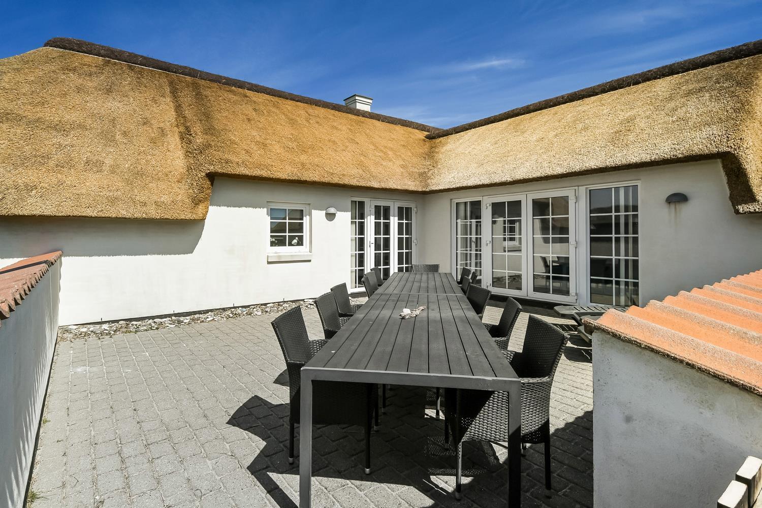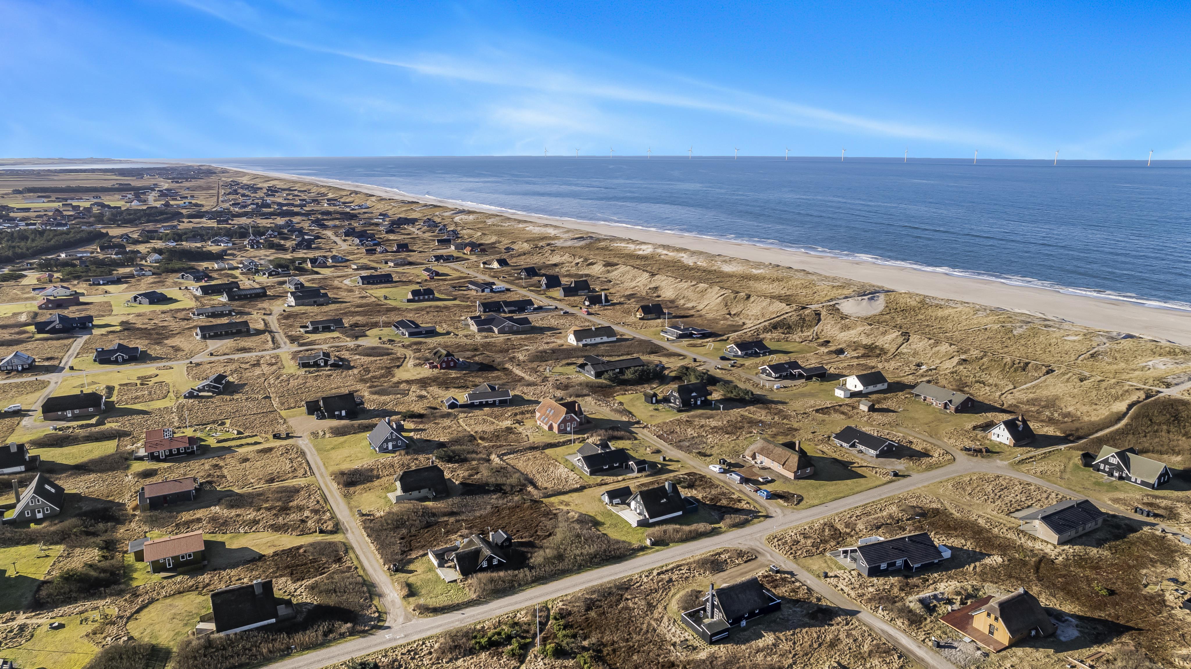 Das Haus ist 199 m² gross und hat 6 schöne Schlafräume: 1DB + 1DB + 1DB + 1DB + 2B + 2B. In die 4 Schlafräume mit DB gibt es Fernseher mit dänische und deutsche Programme. Im Herzen vom Haus finden Sie die gut ausgerüstete Küche mit allen möglichen Geräten, Ceranfeld, eingebauten Ofen, Abzugshaube, Gechirrspüler, Mikrowelle und Kühlschrank mit Gefrierfach. Geniessen Sie das Essen am Esstisch und schauen Sie aus den Fenstern auf die hohen Dünen direkt an der Nordsee; oder ruhen Sie sich in den hochwertigen Möbeln aus. Auf dem Fernseher können Sie dänische und deutsche Programme sehen, mit die volle VIA-SAT Paket. Es gibt ausserdem Radio/DVD. Ausgang vom Wohnraum zur eingezäunten Terrasse. Es gibt im Wohn-/Aufenthaltsraum einen sehr schönen Boden. Sollte es zu kalt werden, machen Sie bloss den Kaminofen an und Sie können durch die Flammen die intensive gemütliche Wärme geniessen. Die Wellnessabteilung ist mit Whirlpool, Sauna und einem 25 m² großen Pool ausgestattet. 3 Badezimmer mit Toilette, Dusche, Waschbecken und Fussbodenheizung. Waschmaschine und Trockner stehen im Flur. Neue Luft zu Wasser Anlage macht das Haus sehr energiefreundlich und macht für Sie einen günstigen Verbrauch von Nebenkosten. Kinderstuhl im Haus. Max. 2 Haustiere erlaubt. Nichtraucher-Haus.