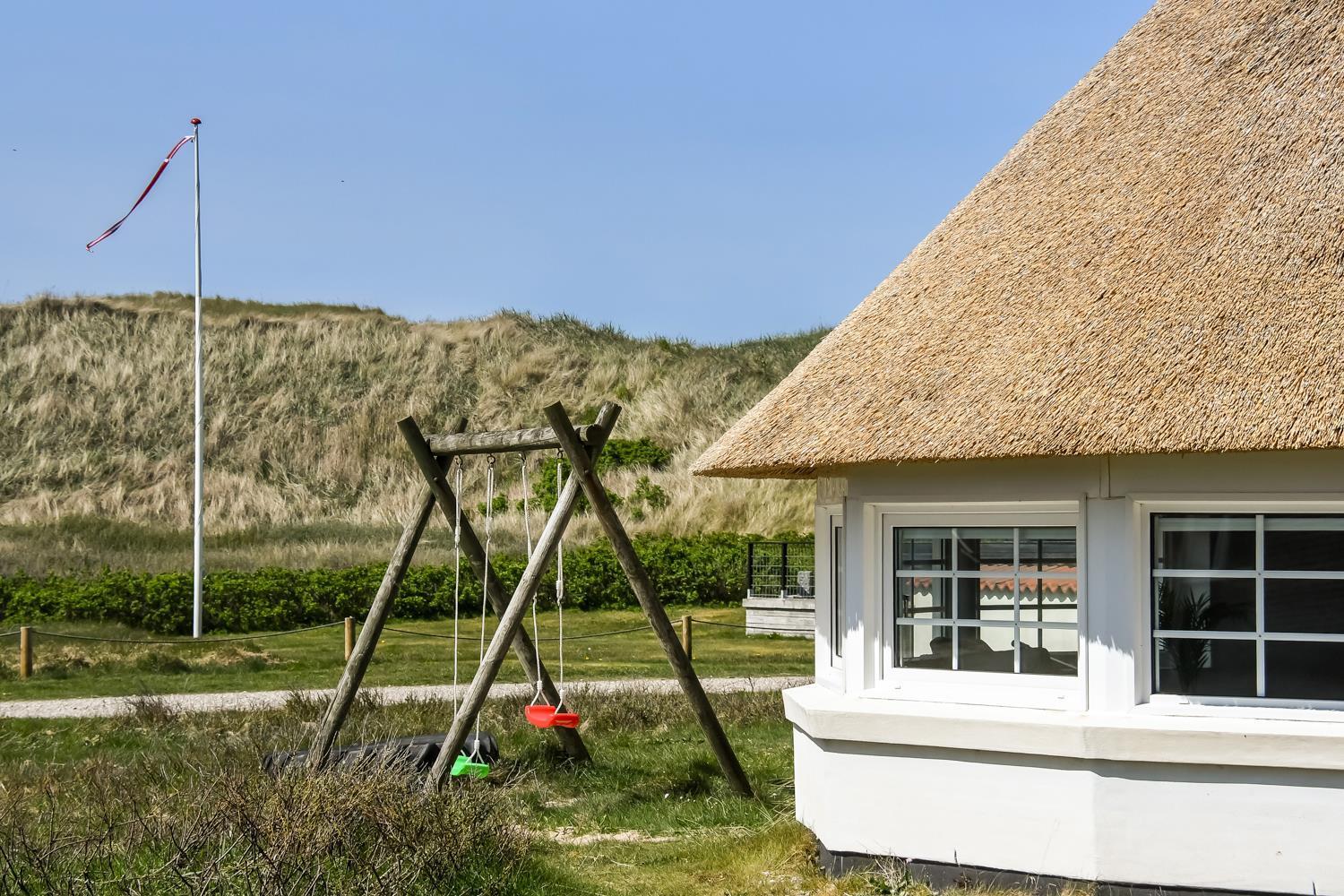 Das Ferienhaus ist auf einem 2.500 m² grossen Dünengrundstück gelegen nur 100 m von der Nordsee entfernt. Eingezäunte Terrasse mit Tisch/Bänken, Sonnenliegen und Grill. Ideal für Kinder und Haustiere. Geniessen Sie die Sonne oder einen schönen Grillabend miteinander hier auf der Terrasse. Sie können auch mit dem Hund in der Ferienhaussiedlung oder über die Dünen und dann am Strand entlang zu jeder Jahreszeit spazieren gehen. Es hat immer einen erholsamen Wert. Auf dem grossen Grundstück gibt es für die Kinder Schaukeln. Das Haus ist nur 800 m vom Einkauf entfernt. Innerhalb von 10 Minuten mit dem Auto erreichen Sie Lemvig mit mehreren Spezialgeschäftenn, oder aber das einmalige Hafendorf Thyborøn, welches auch eins der besten Strände an der Westküste bietet. Hier gibt es auch verschiedene Aktivitäten die man besuchen kann.