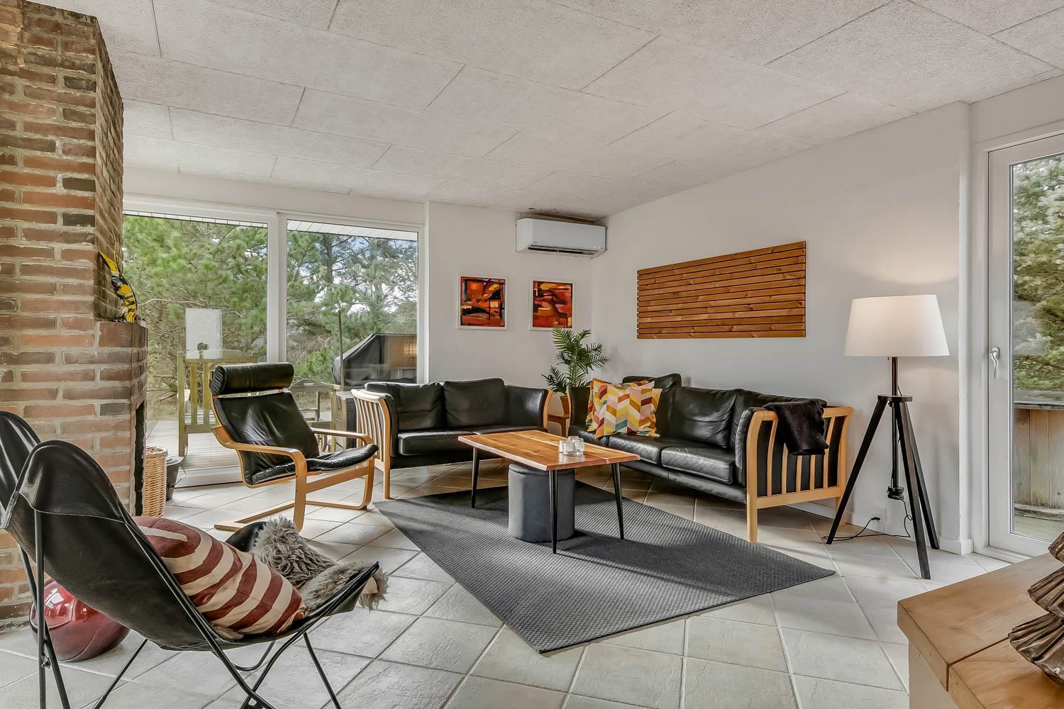 Das Haus hat ein Wohnzimmer mit bodentiefen Fenstern, die für fantastisches Licht sorgen, und ist mit Polster- und Ledermöbeln eingerichtet. TV mit deutschen Programmen, Chromecast für Streaming von Apps/Radio/TV, für die Sie selbst ein Abonnement haben müssen. Brennofen und Wärmepumpe tragen zum energiesparenden Heizen bei. Eine Schiebetür ermöglicht den Zugang zur großen Terrasse, eine kleinere Tür ermöglicht den Zugang zur Westterrasse.