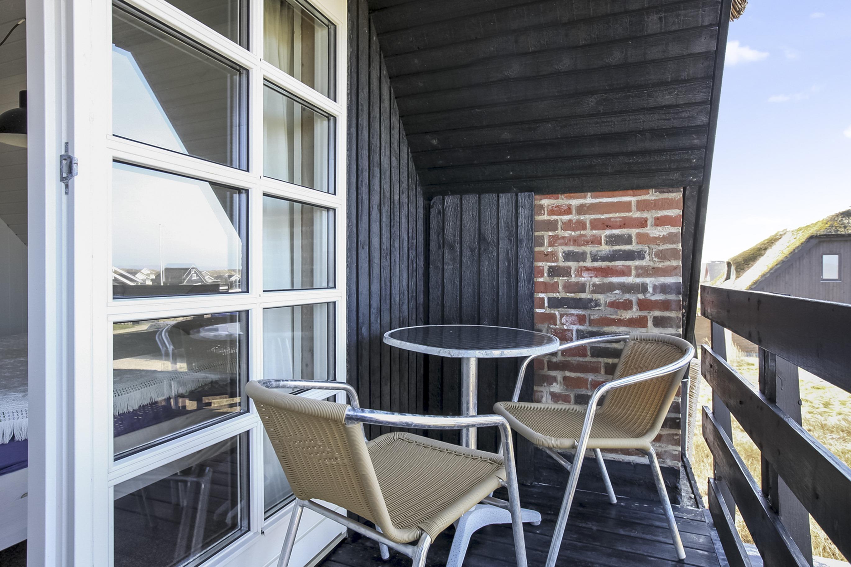 Über die Treppe im Wohnzimmer gelangen Sie in den 1. Stock. Hier gibt es 2 Schlafzimmer (1DB, 1DB). Von einem Schlafzimmer aus haben Sie Zugang zu einem kleinen Balkon mit Blick auf die Dünen an der Nordsee.