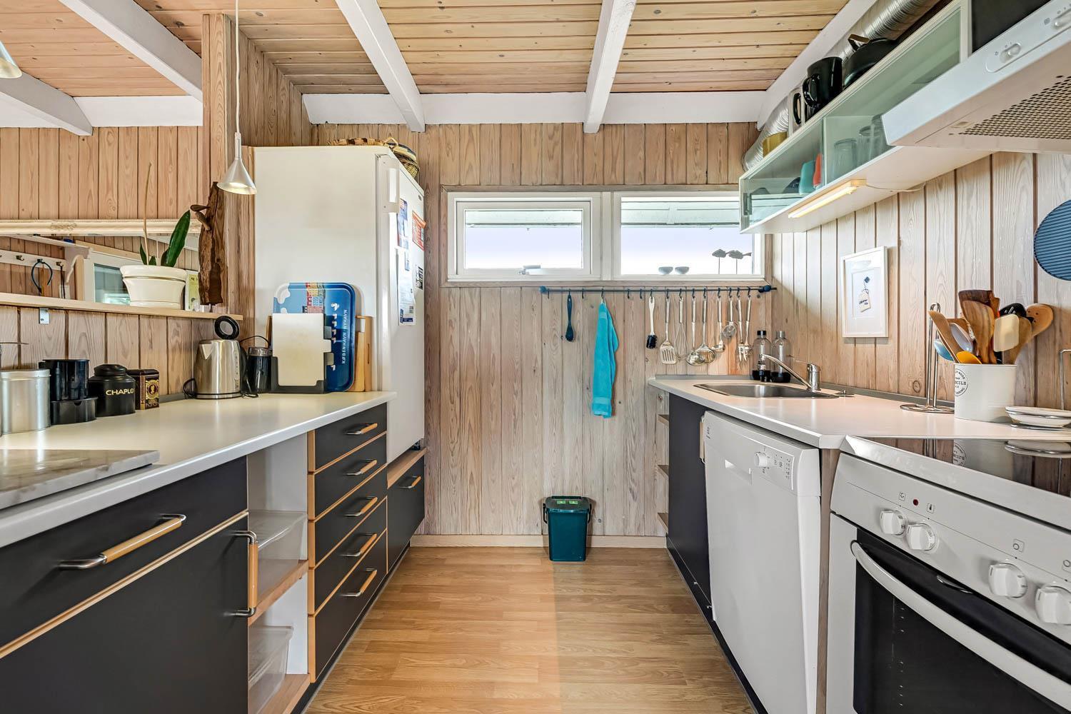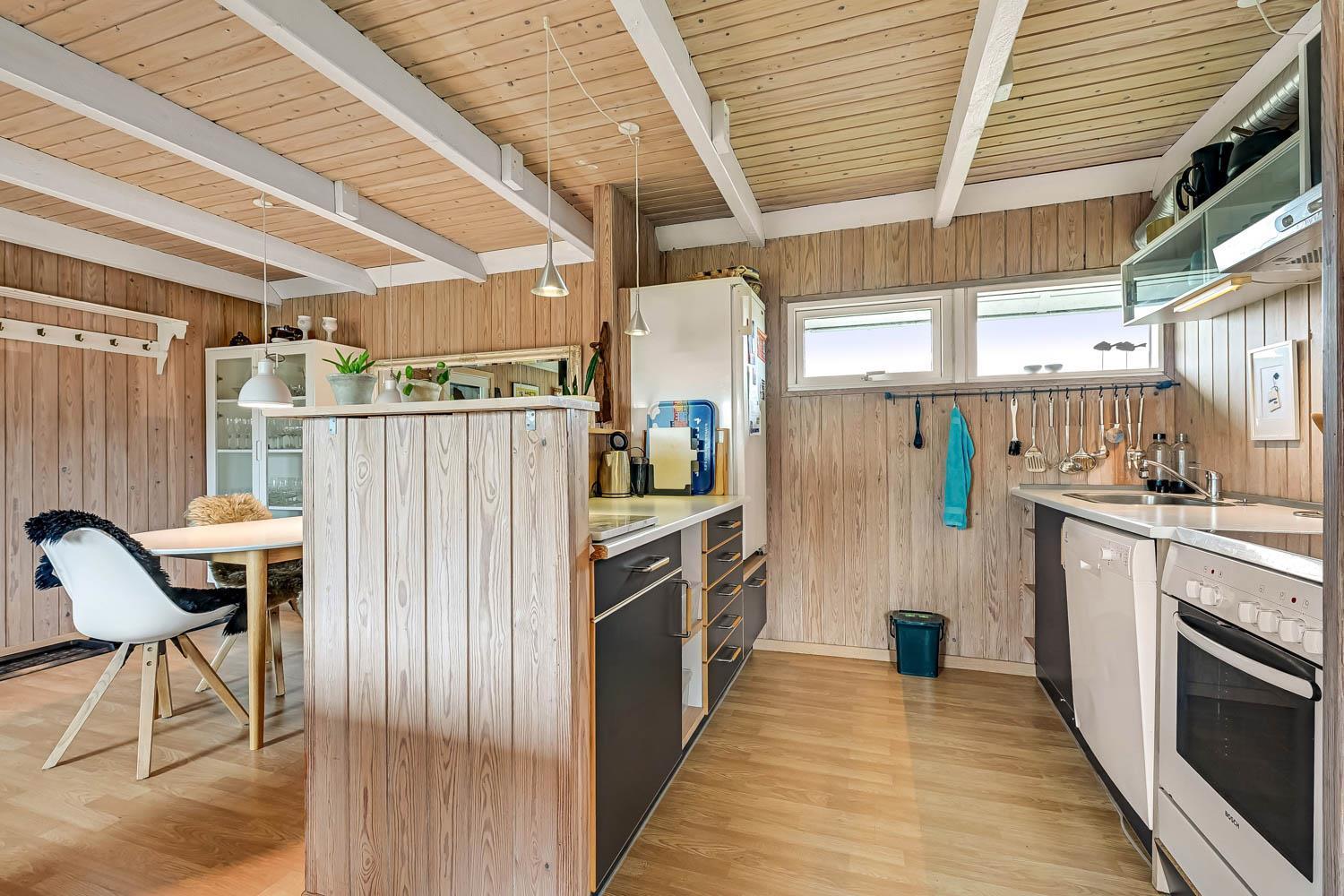 80 m² grosses Ferienhaus mit 3 Schlafräumen. Im Parterre gibt es 1 Schlafraum mit 2B und im 1. Stock gibt es 2 Schlafräume mit 1DB + 2B. Kombinierter Wohnraum mit der Küchenecke mit Blick auf die hohen Dünen. Schöne Küchenecke mit z.B. Geschirrspüler, Herd mit Cerankochfeld, Abzugshaube und allem an Geschirr und Kochgeschirr und Kühlschrank mit Gefrierfach. Schöner Wohnraum mit Ledermöbeln, Bluetooth Lautsprechern und steiler Treppe zum 1. Stock. Entspannen Sie sich vor den Kaminofen der zusammen mit die Wärmepumpe für niedrige Nebenkosen sorgt. TV mit dänischen und deutschen Programmen und der Möglichkeit TV/Radio/Apps via Chromecast zu streamen. Der Esstisch ist praktisch an der Küchenecke plaziert. Waschmaschine und Trockner. Kinderbett und Kinderstuhl für die kleinen Gäste. Praktische Böden im ganzen Haus. Wenn Sie ein Elektroauto oder einen Plug-in-Hybrid haben, verfügt das Haus über eine Ladesteckdose. Nichtraucher-Haus. Haustiere sind nicht erlaubt.