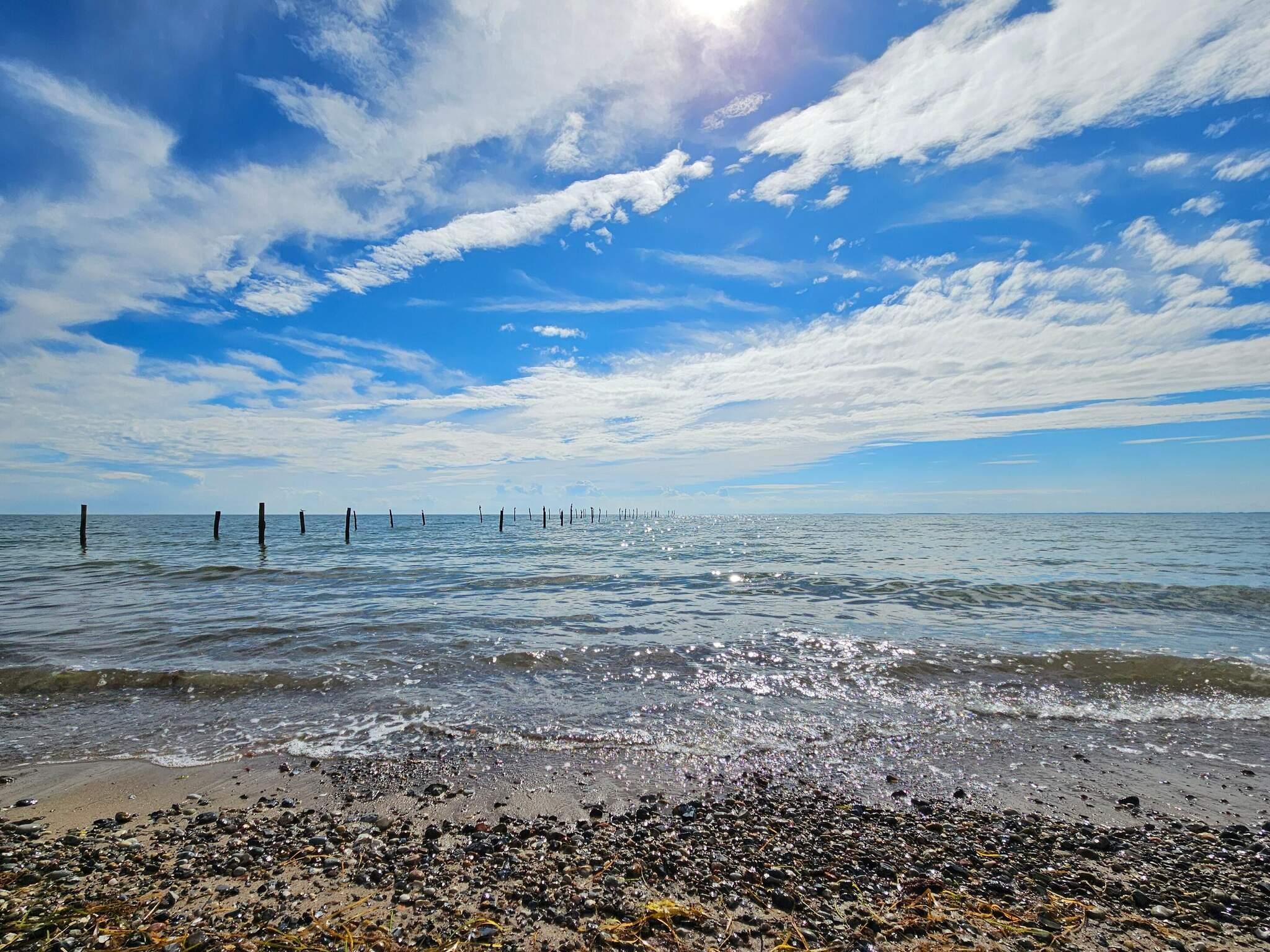 Auf dem angelegten Rasengrundstück stehen auch eine teilweise überdachte Terrassenfläche sowie ein Carport bereit. Auf dem Rasen gibt es Platz für Spiel, Sport und Spaß mit der ganzen Familie. Auch ein Gartengrill steht für lauschige Abende bereit. Genießen Sie dort den Sommerabend nach einem Spaziergang am nahe gelegenen Strandufer.