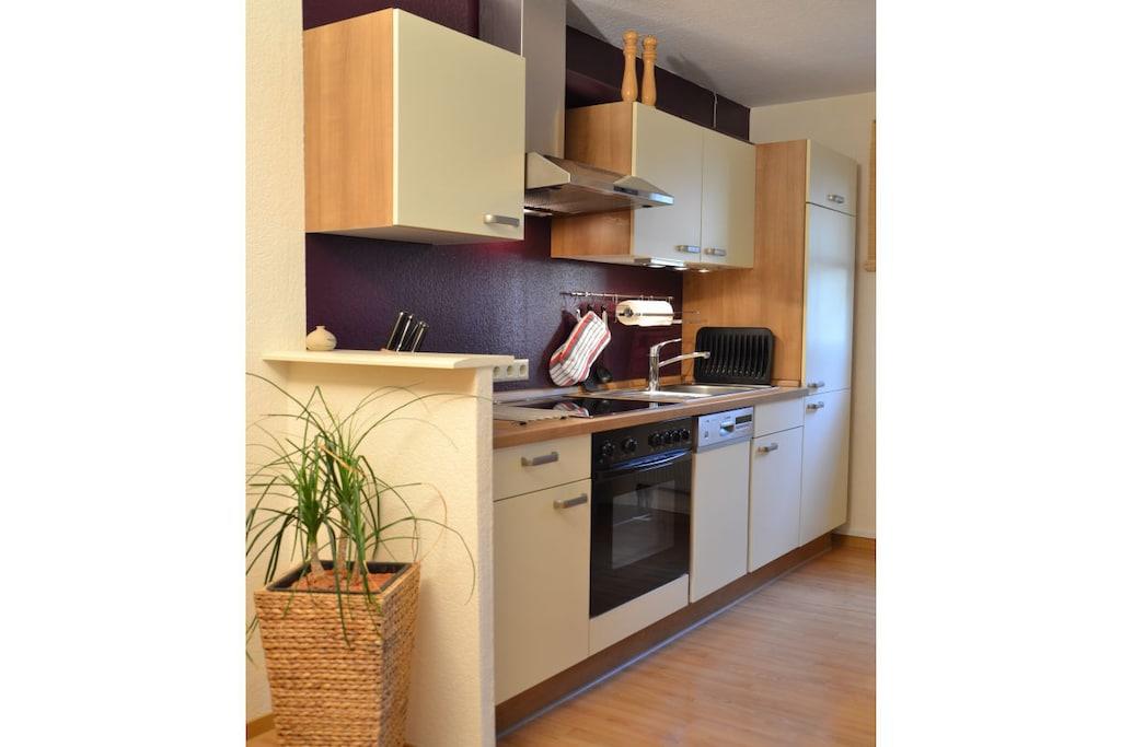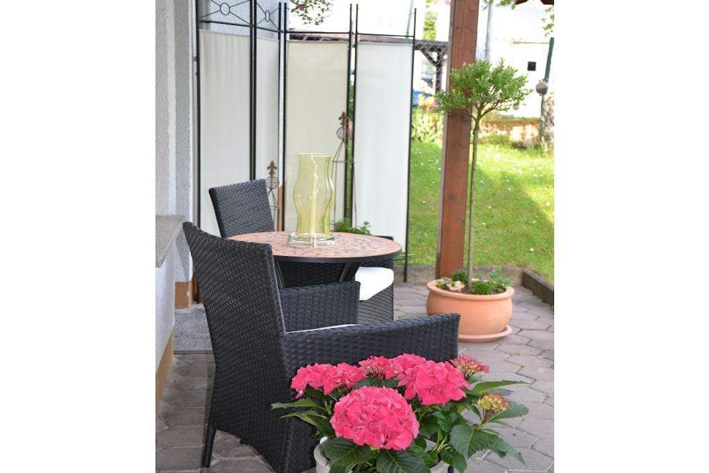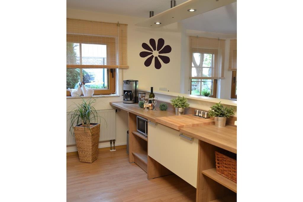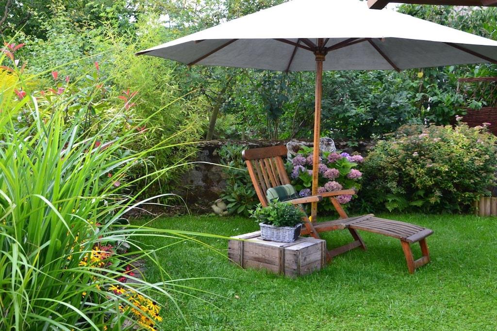 Das Apartment empfängt mit offenem Wohnraum, in dem Küche, Essplatz und Wohnzimmer stilvoll ineinander übergehen und direkten Zugang zur Terrasse und Garten bieten. Die Küche ist modern ausgestattet – mit Induktionsfeld, Backofen, Spülmaschine, Kühlschrank/Gefrierfach und allem was zum Kochen nötig ist. Die Kücheninsel mit Essplatz fügt sich dezent ins Wohnambiente ein. Im Schlafzimmer wartet ein Doppelbett und ein großer Schiebetürenschrank. Das neue, moderne Bad mit bodengleicher Dusche, Waschbecken aus Naturstein, Waschmaschine und Trockner sowie Holzböden in allen Räumen runden den Charakter des Apartments ab und schaffen eine gemütliche Atmosphäre. Zusätzlicher Komfort: WLAN, TV, eigener Eingang und geschützter Platz für Fahrräder.