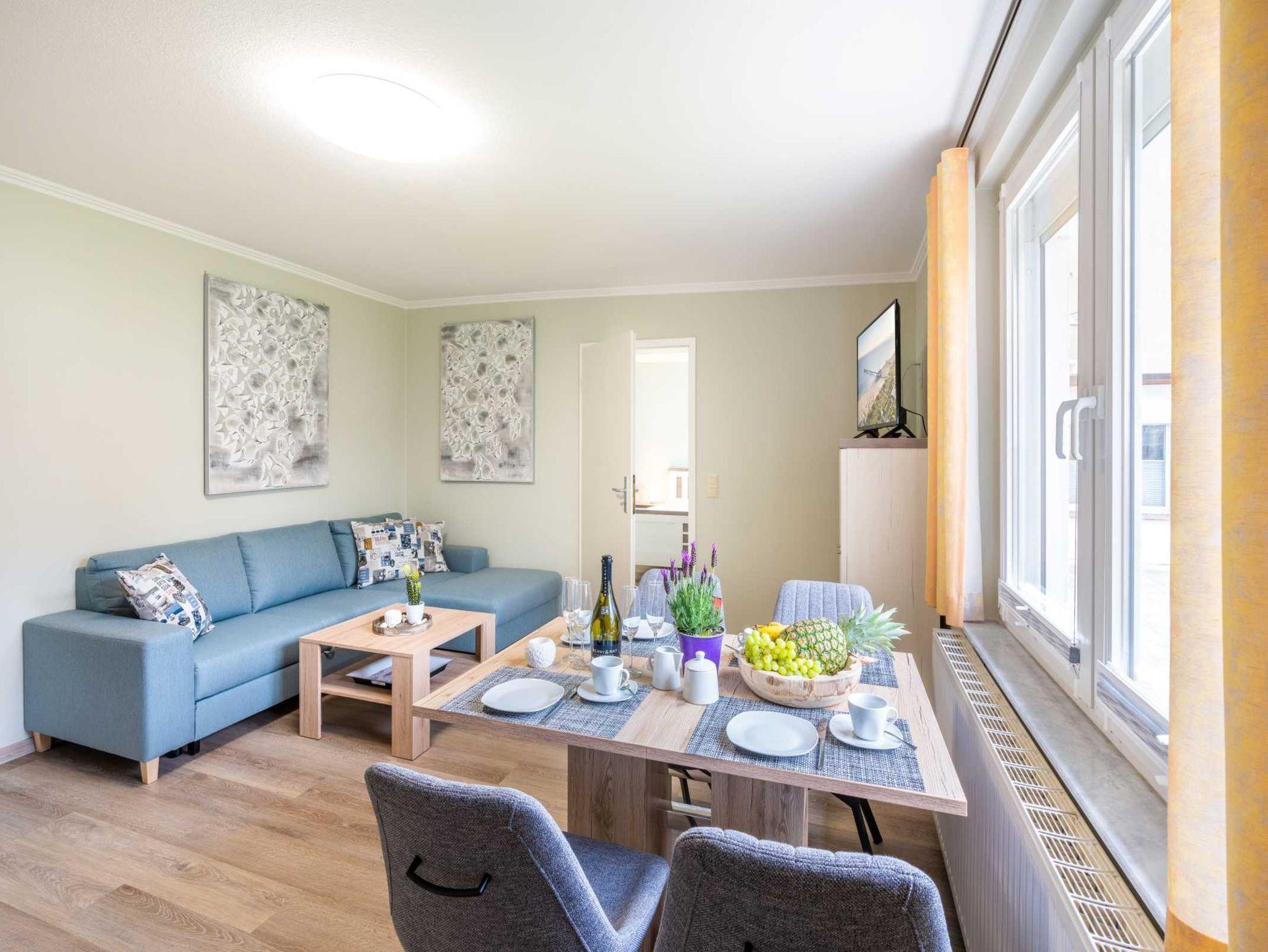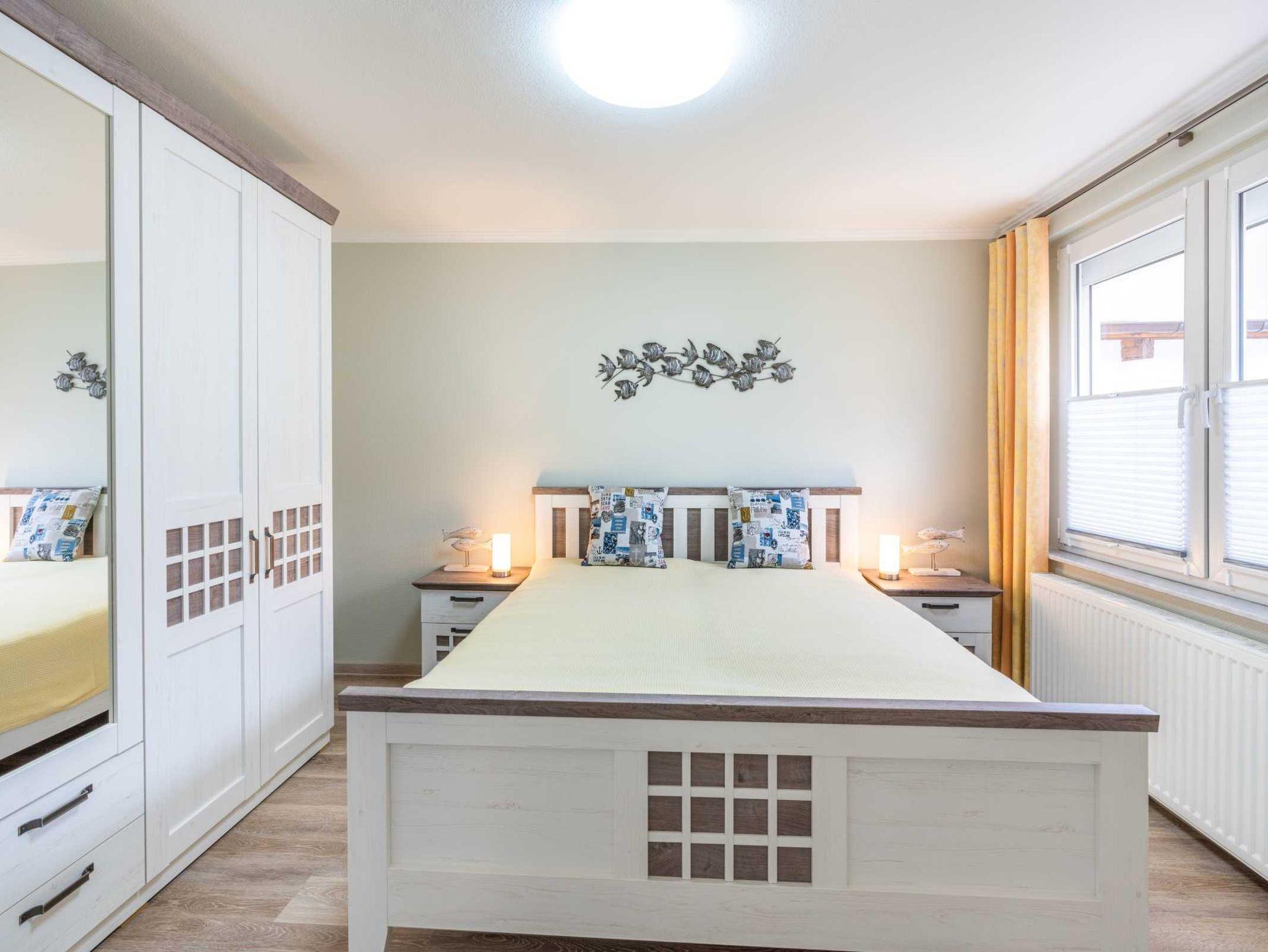 Im angrenzenden Schlafzimmer mit einem Doppelbett (180 x 200cm/getrennte Matratzen) können im Kleiderschrank Ihre persönlichen Dinge unterbringen. Auf der Schlafcouch im Wohnzimmer haben Sie besten Sitz- und Schlafkomfort für die 3. Person.