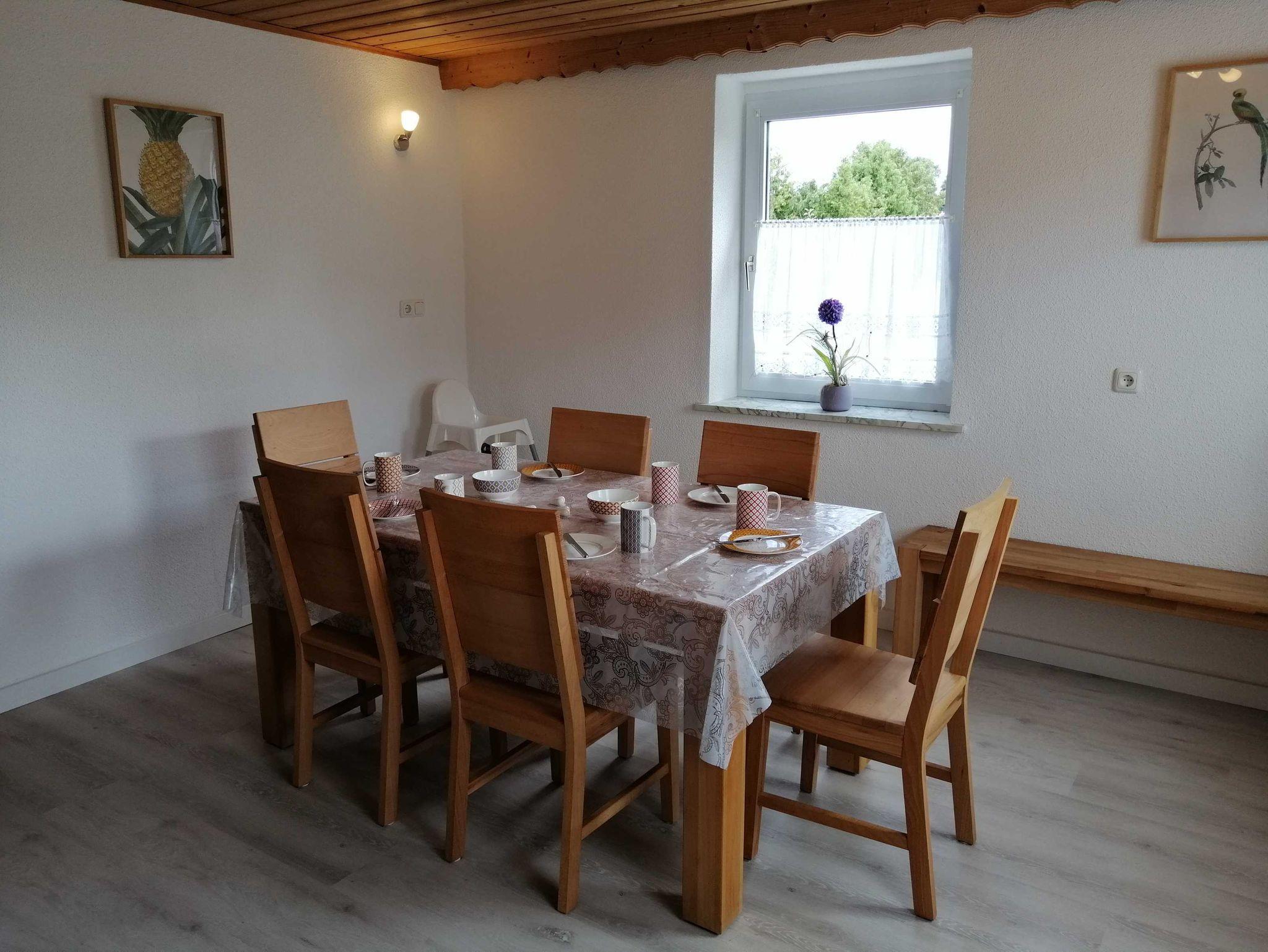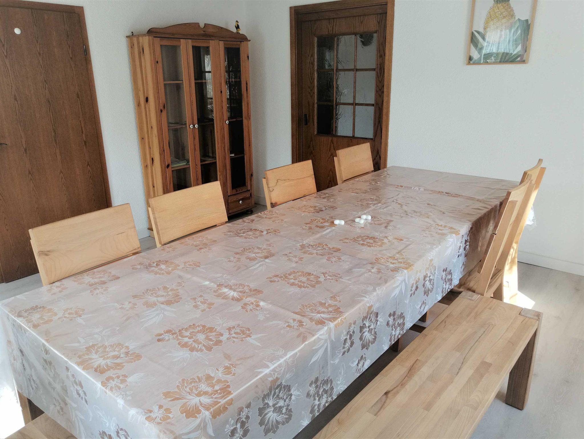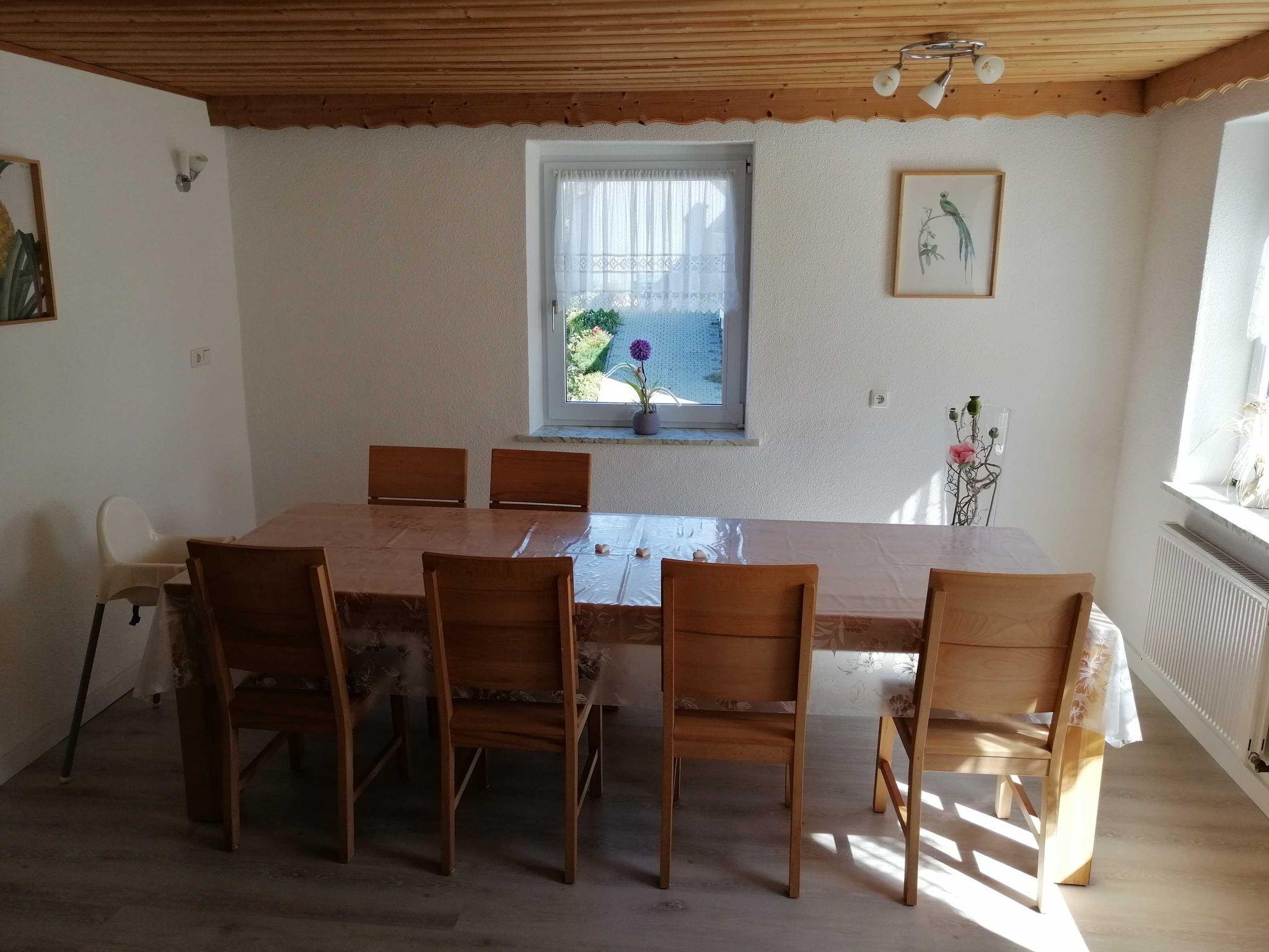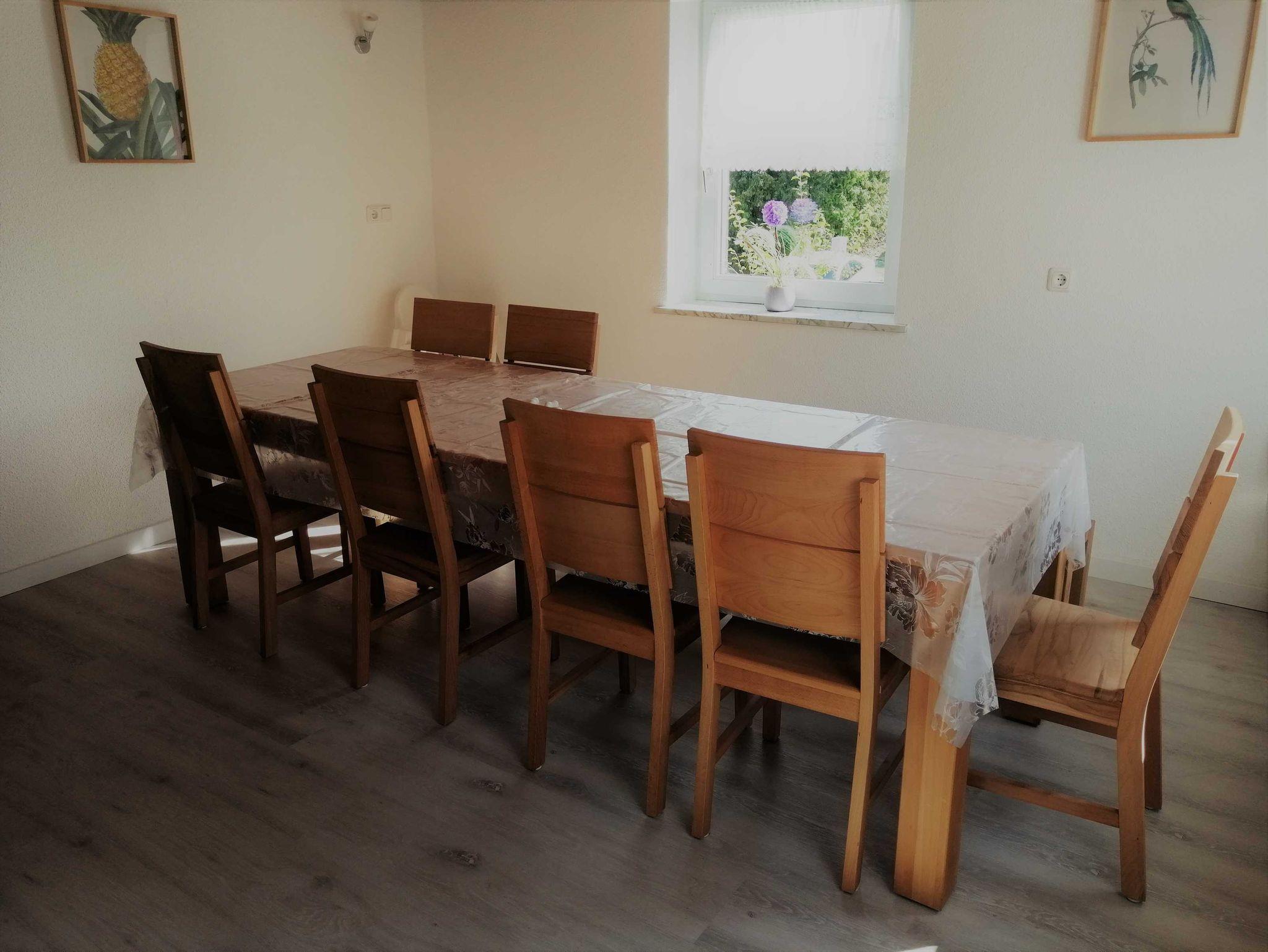 • Esszimmer mit großen Tisch, auf Wunsch mit bis zu zwei Kinderhochstühlen