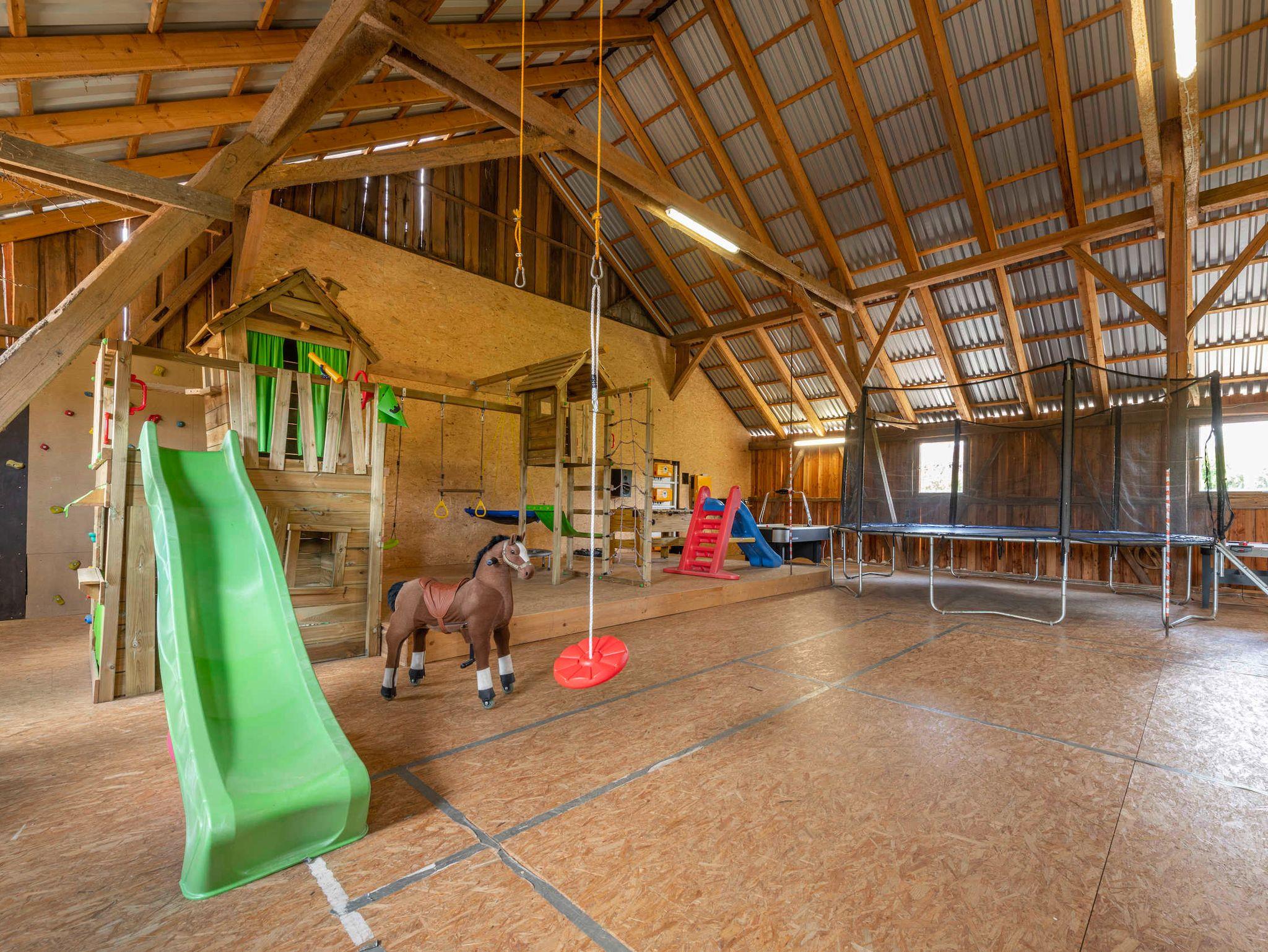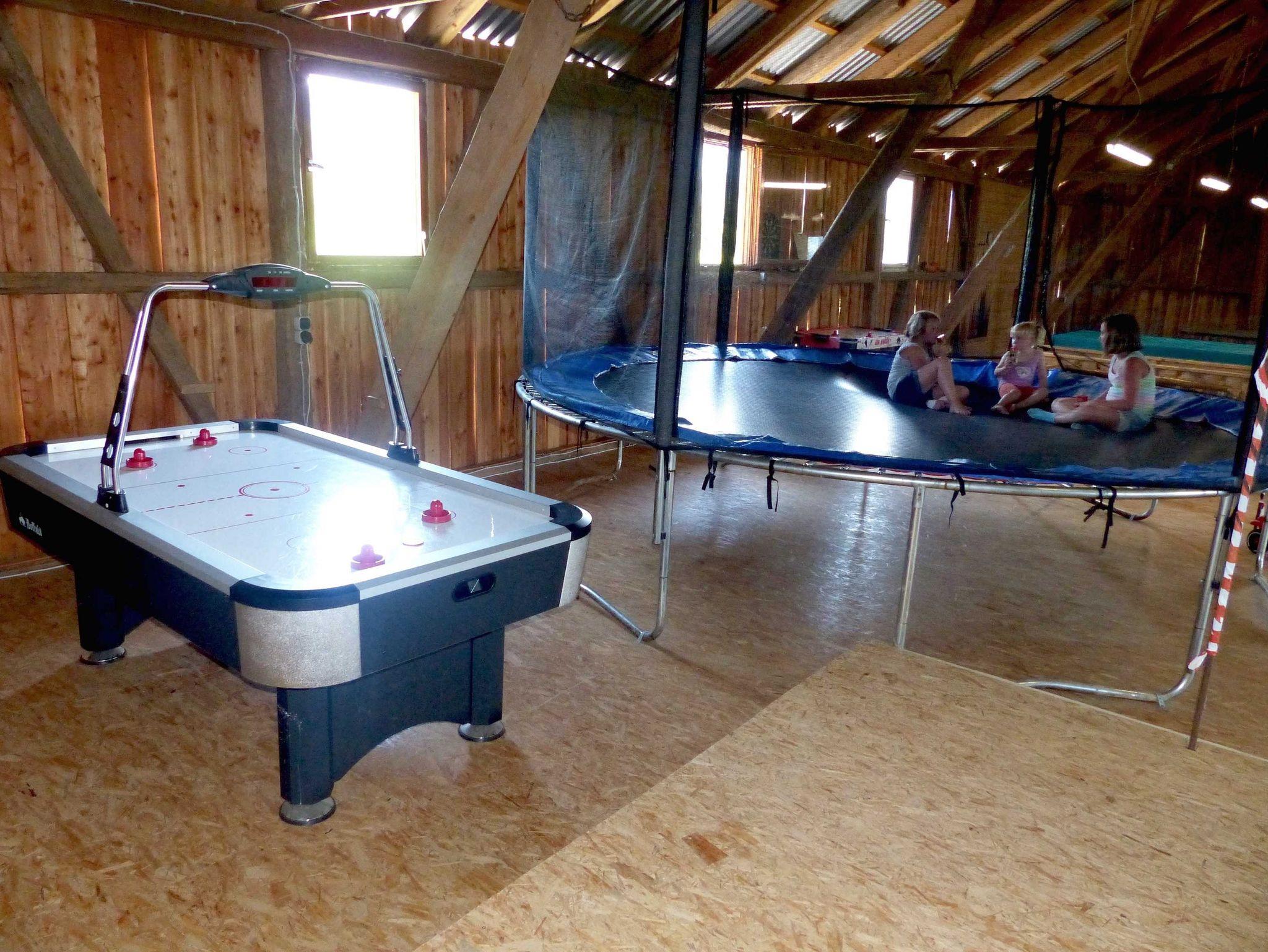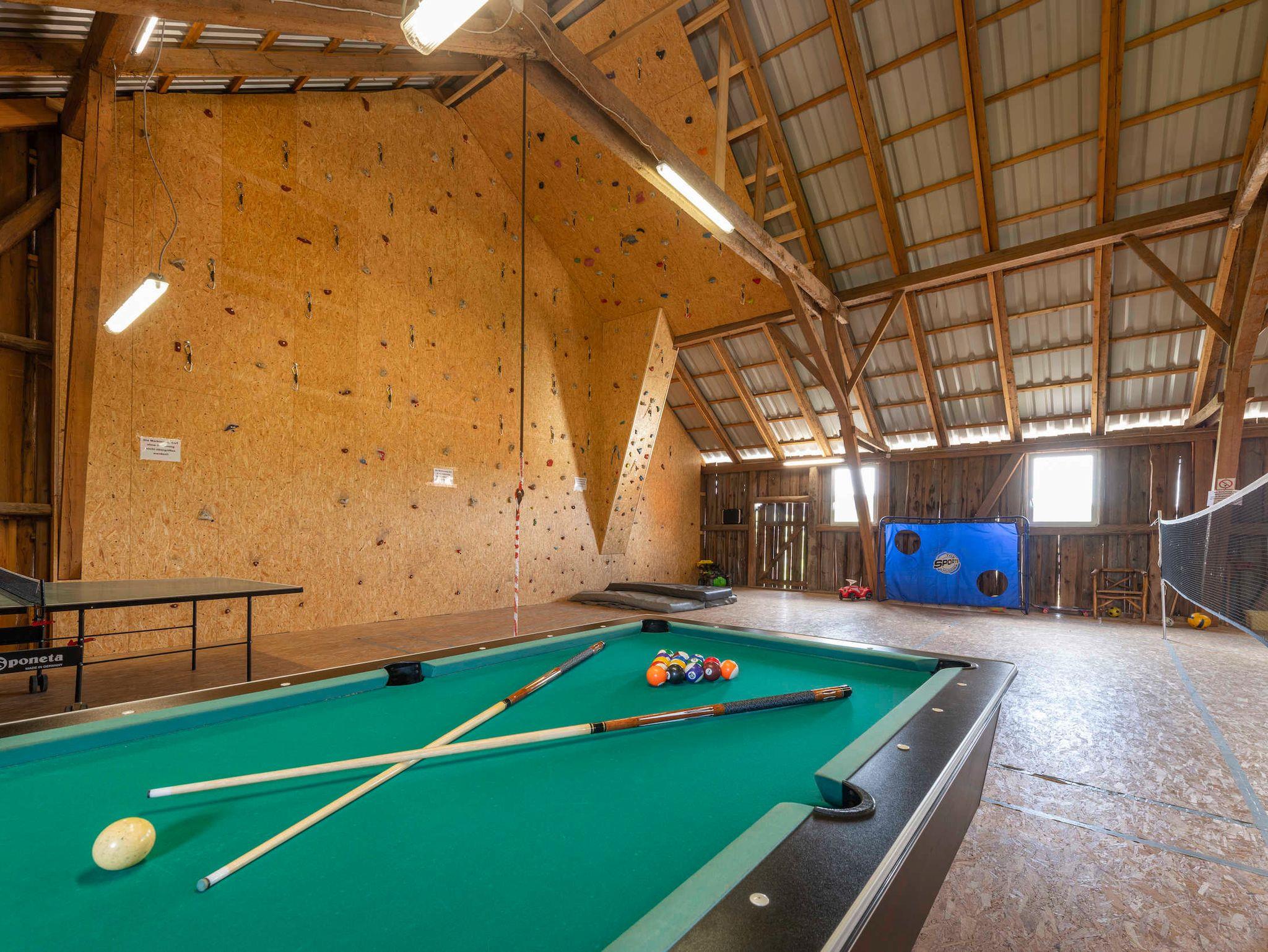 * 200 qm Indoor Spielscheune , mit original Badmintonfeld, Billard, Kicker, Tischtennis, Airhockey, Dart, Kletterwand, Riesentrampolin, Kletterturm mit Rutsche und Schaukel .... und viel Platz zum Toben und Spielen.* Spiel- und Liegewiese mit Sandkasten, Kinderspielhaus.