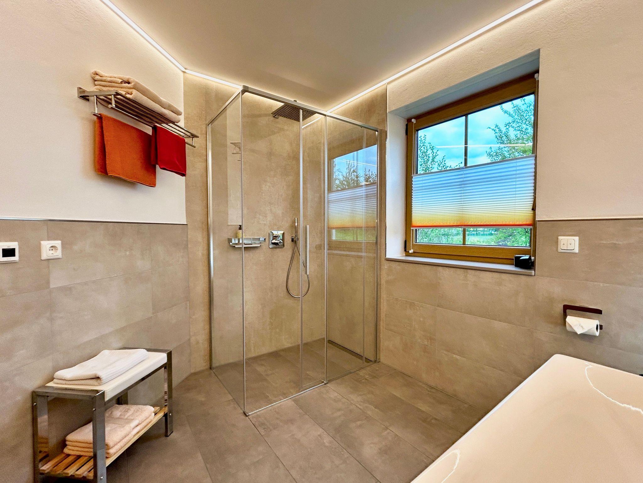 • ein Bad mit Regendusche, WC und Fön.