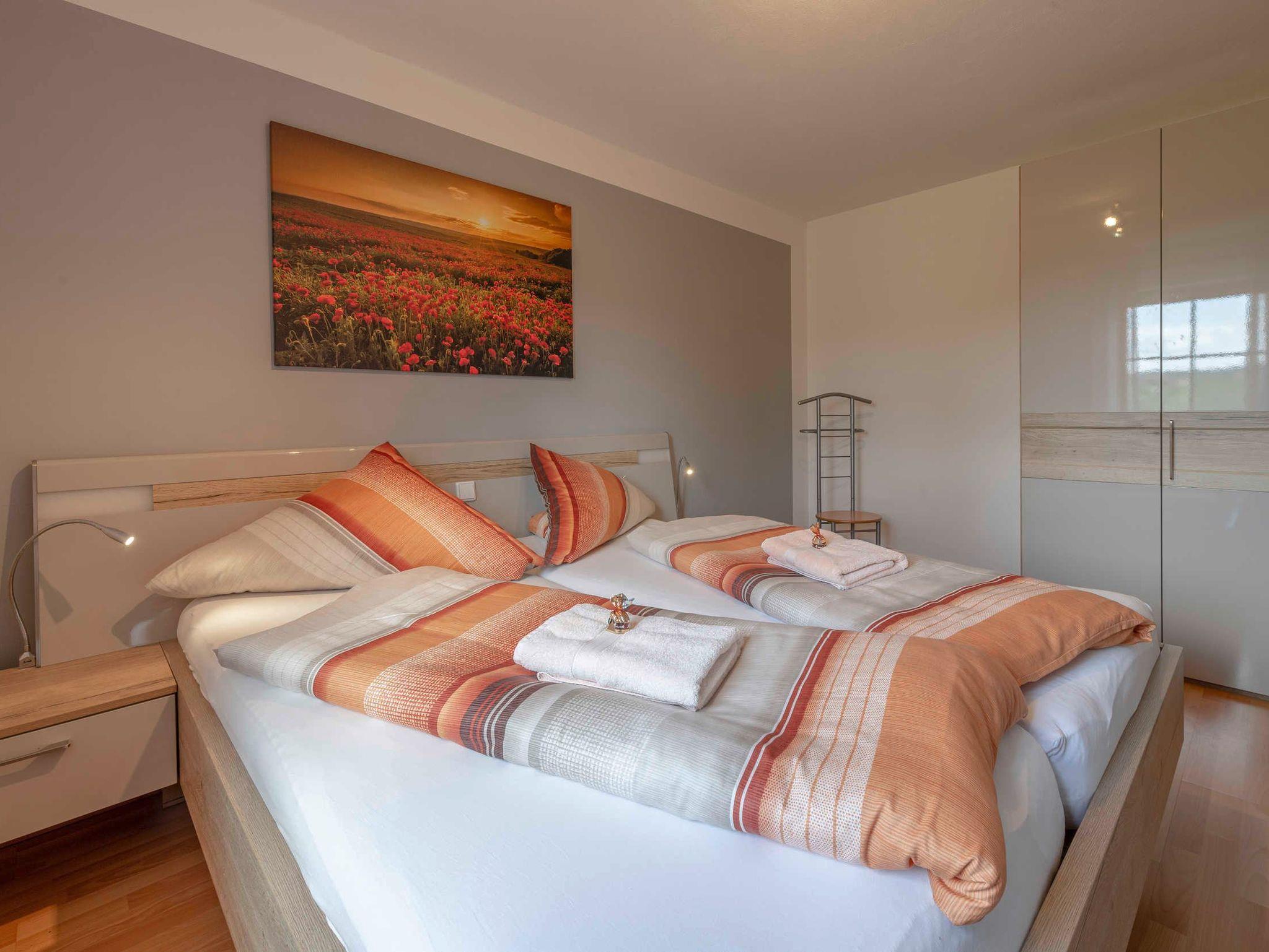 • ein Schlafzimmer, Bett 1,80 x 2,00m mit übergroßen Bettdecken und komfortabler Einstieghöhe von 58 cm, Radiowecker, Safe, kostenlose Leihbademäntel, Fliegenschutz am Fenster.