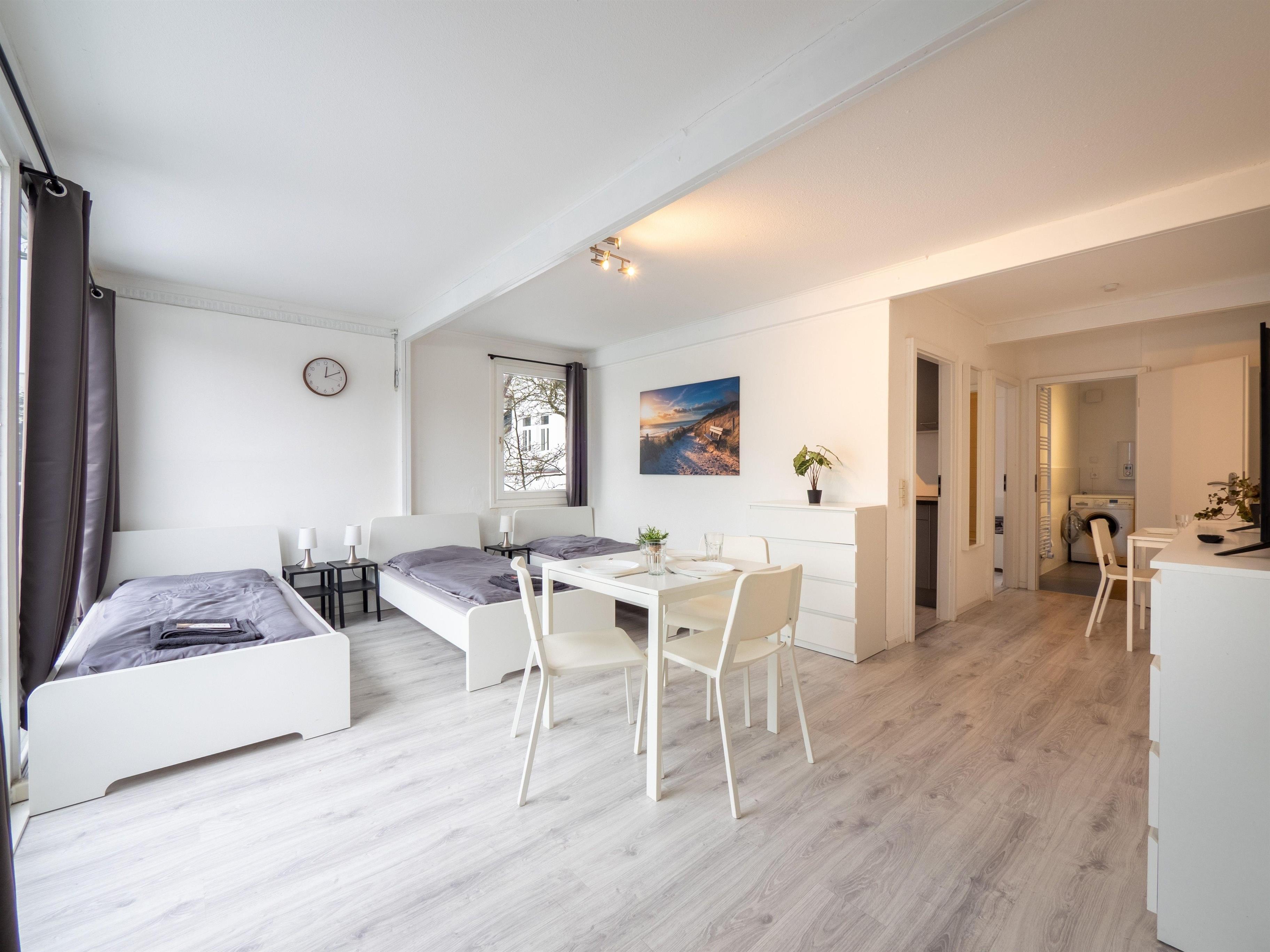 Diese kompakte, frisch ausgebaute Monteurunterkunft im 1. Obergeschoss bietet auf ca. 30 m² Platz für bis zu 5 Personen. Sie liegt zentral in Ahrensburg, nur wenige Minuten von Hamburg entfernt. Die Wohnung ist komplett möbliert und auf praktische Monteurbedürfnisse zugeschnitten – funktional, günstig, sauber.