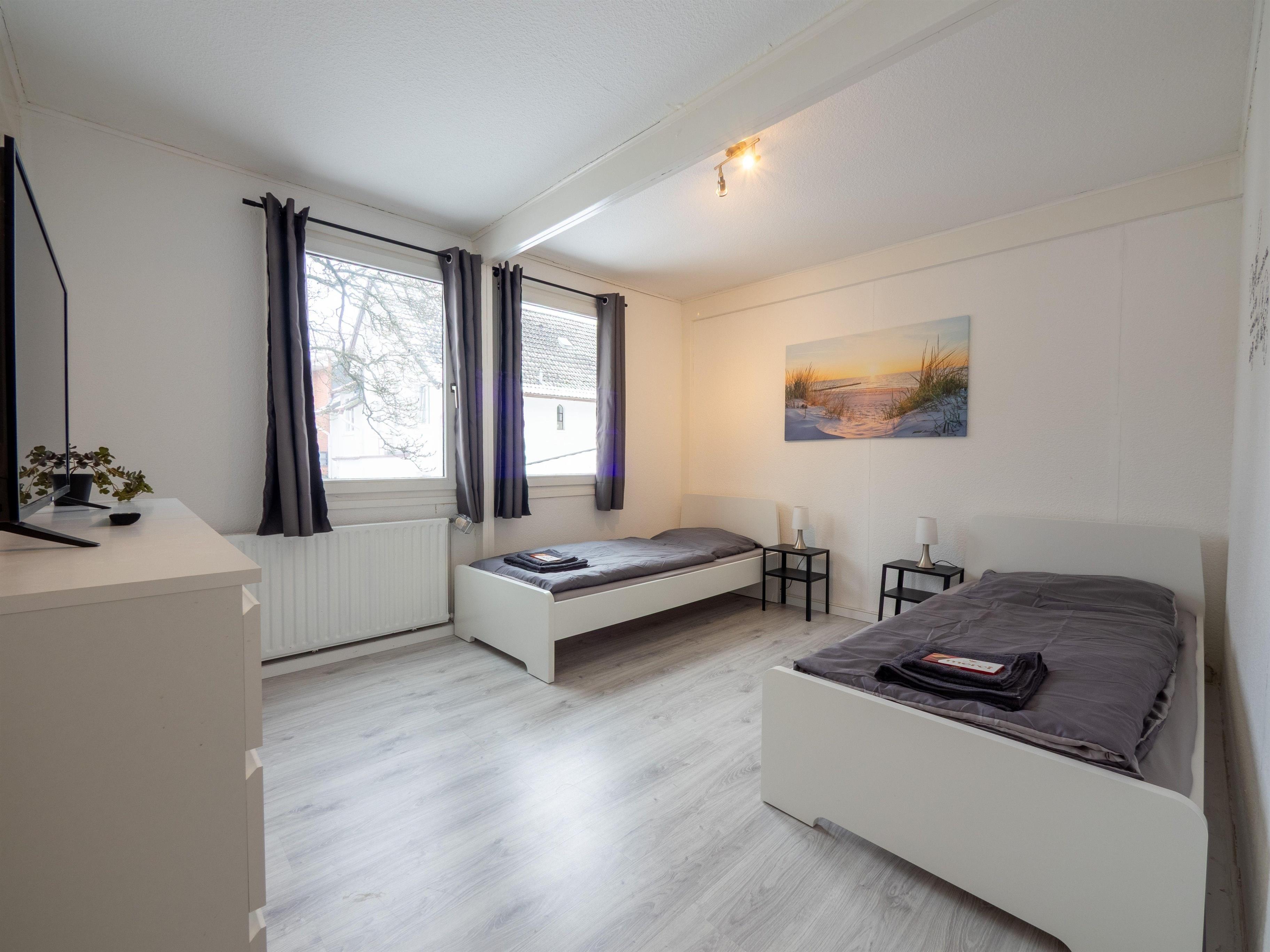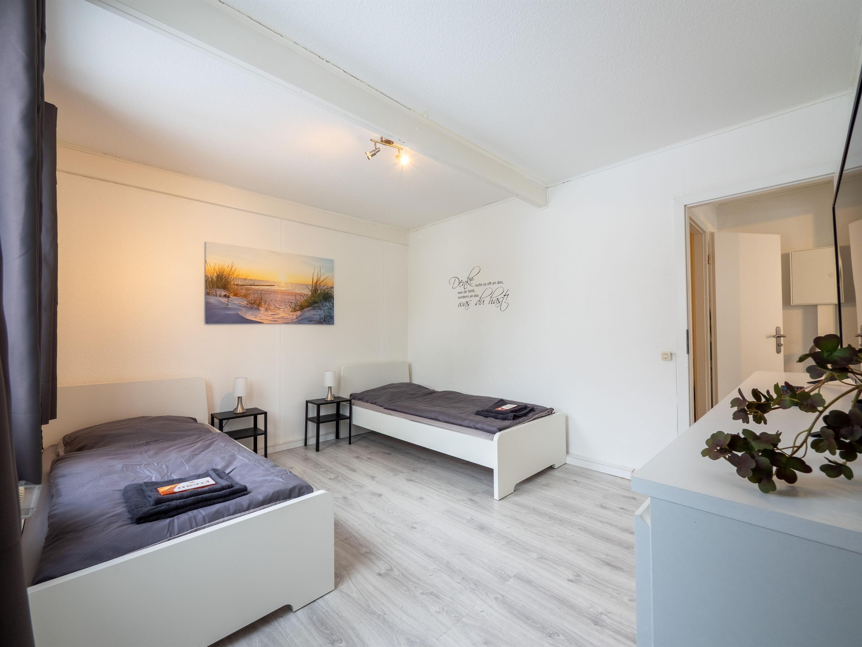 - Schlafzimmer 1: 2 Einzelbetten, Smart-TV, Nachttisch, Bettwäsche