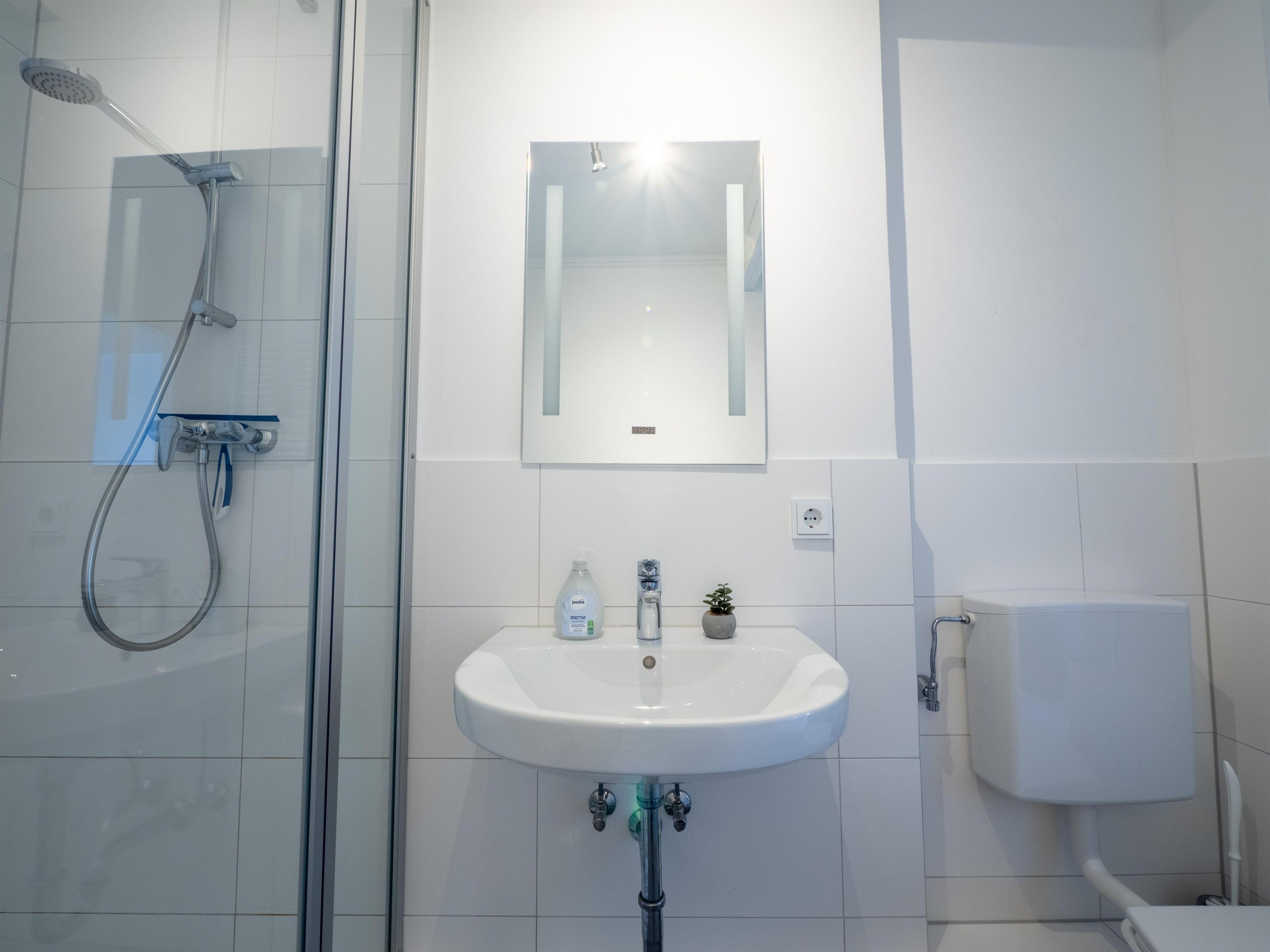 - Dusche, WC, Waschbecken