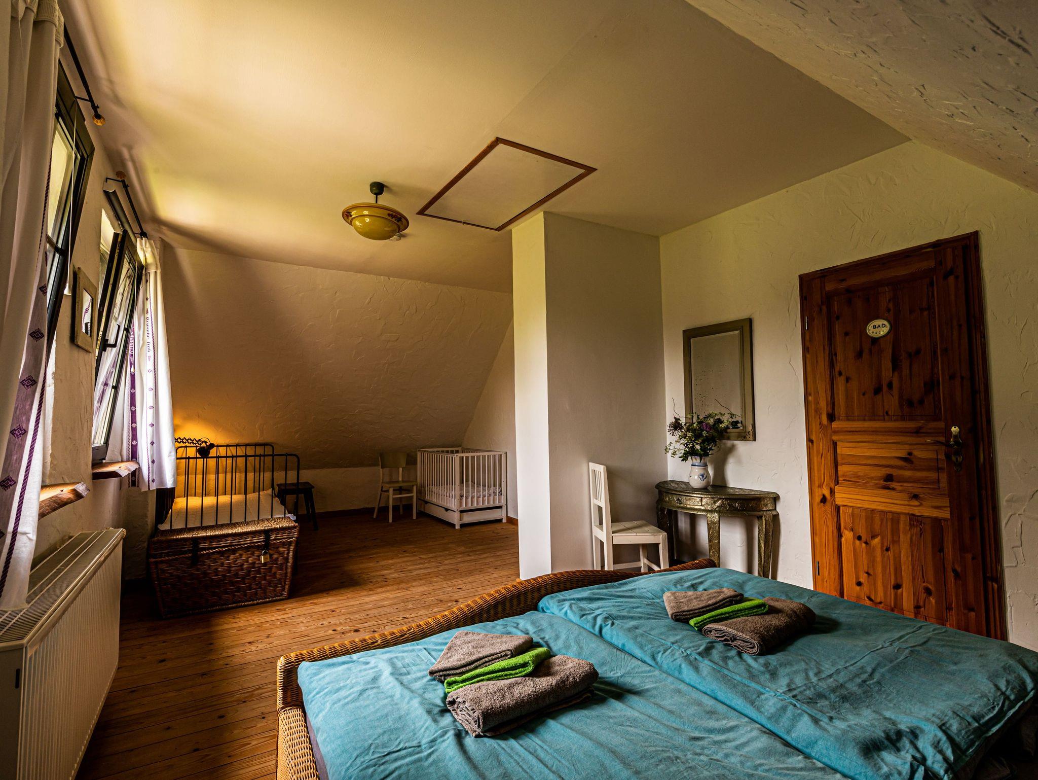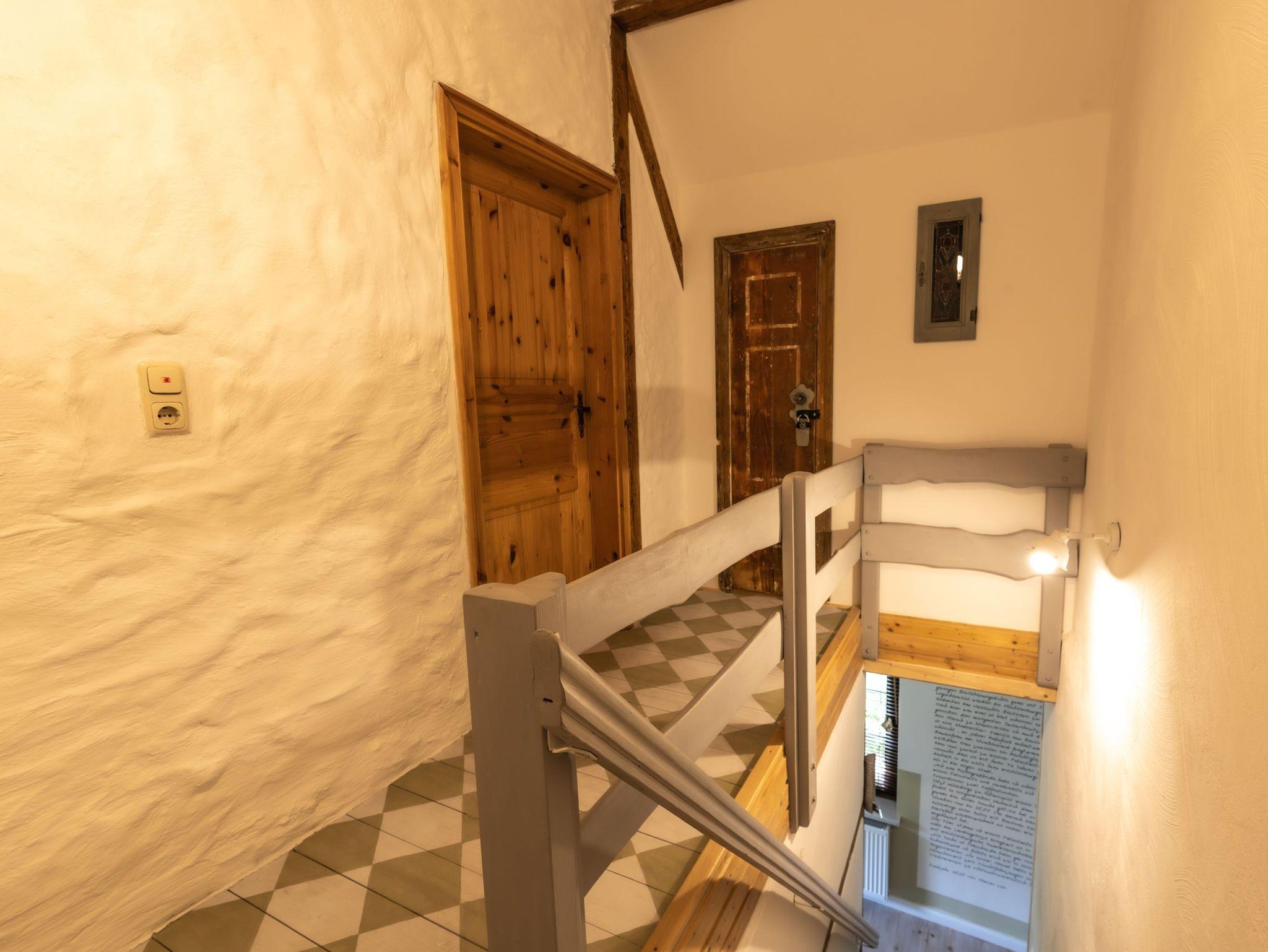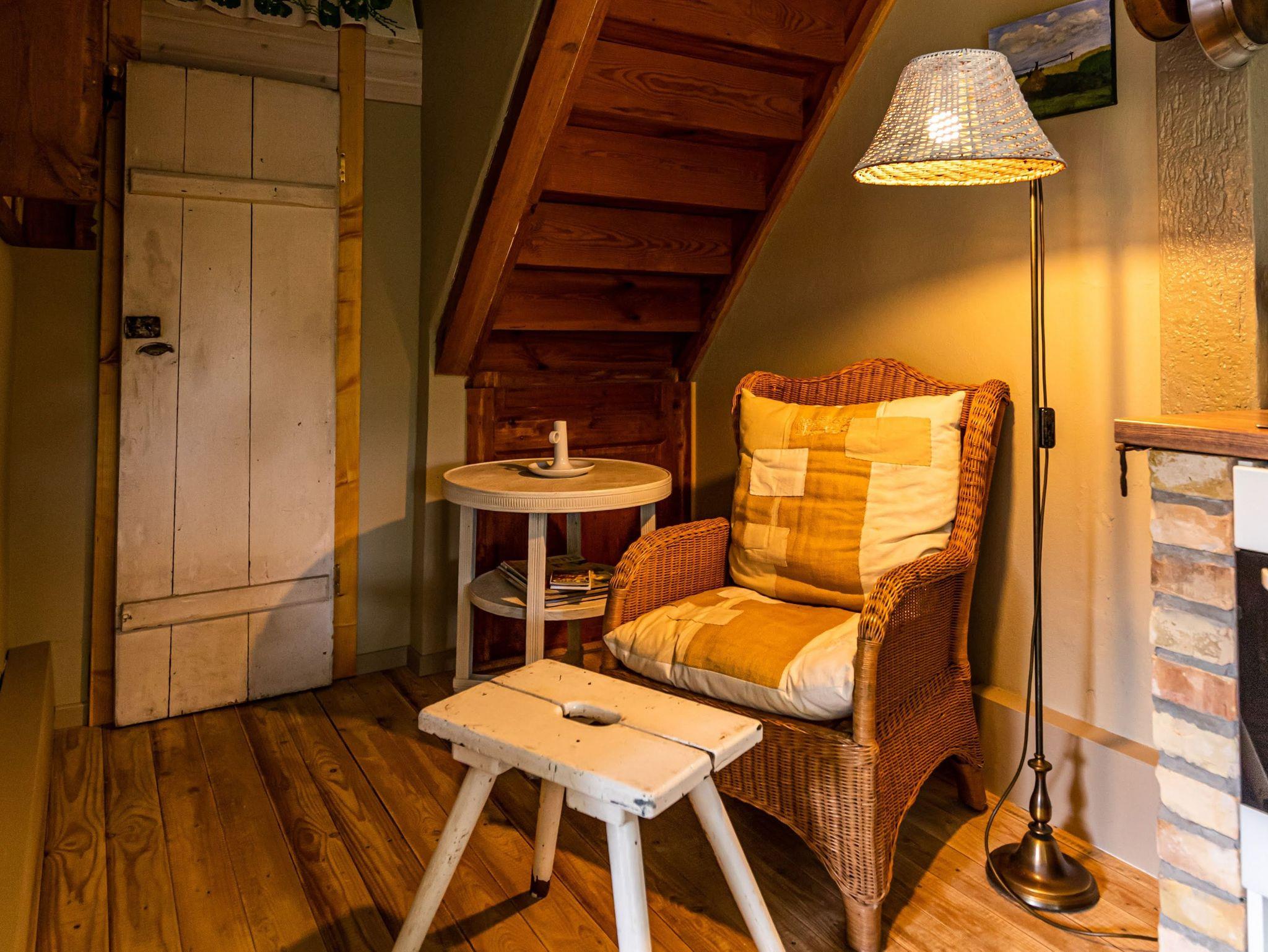 Die Ferienwohnung im Spöckerhus ist eine gemütliche Maisonettewohnung für bis zu 4 Personen, die im Landhausstil eingerichtet ist und in einer ruhigen Umgebung mit viel Grün und Natur liegt. Die Wohnung bietet auf zwei Etagen eine behagliche Atmosphäre und viel Platz für einen entspannten Aufenthalt. Im Erdgeschoss findest du das Wohnzimmer mit einem Schlafsofa (75x200) und einem Kamin, der an kühleren Tagen für wohlige Wärme sorgt. Die angrenzende Wohnküche ist großzügig geschnitten und bietet einen separaten Essbereich sowie einen Kinderhochstuhl. Die Küche ist gut ausgestattet mit einem Backofen, Herd, Kühlschrank, Geschirrspüler, Mikrowelle, Wasserkocher, Filter-Kaffeemaschine und Toaster, sodass du hier alles findest, um deine Mahlzeiten zuzubereiten. Eine kleine Leseecke lädt zum Verweilen ein. Von der Küche aus führt eine Terrassentür direkt nach draußen, wo du die frische Luft und das weitläufige Grundstück genießen kannst. Für die Sicherheit der Kleinen kannst du das vorhanden Kinderschutzgitter an der steilen Treppe anbringen, die ins Obergeschoss führt. Ein Flur mit Garderobe rundet das Erdgeschoss ab. Im Obergeschoss erwartet dich das Schlafzimmer, das mit einem Doppelbett (180x200), einem Einzelbett (90x200) und einem Babybett ausgestattet ist. Ein Fenster mit Insektenschutz sorgt für angenehme Nächte. Das Badezimmer im Obergeschoss ist mit einer Dusche und WC ausgestattet.