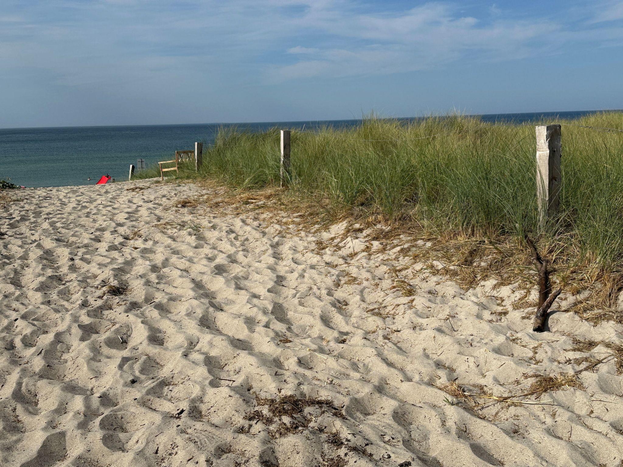 Familiengeführtes reetgedecktes Ferienhaus direkt hinter der Düne, 50 Meter vom Ostseestrand, mit großem Spielplatz und kostenlosem Fahrradverleih.