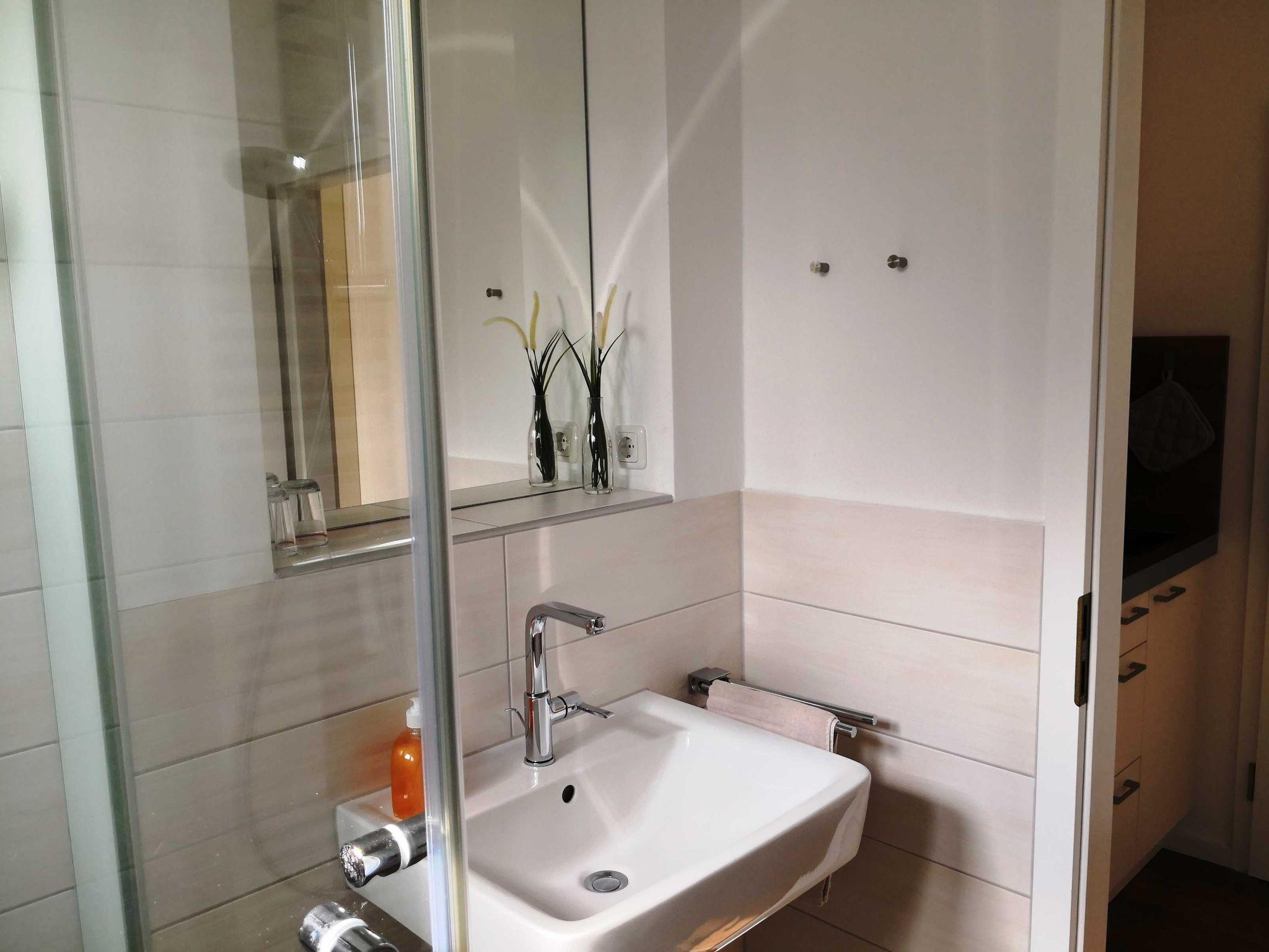 Toaster, TV, Küchenzeile, Kühlschrank, Dusche, Heizung, Kaffeemaschine,