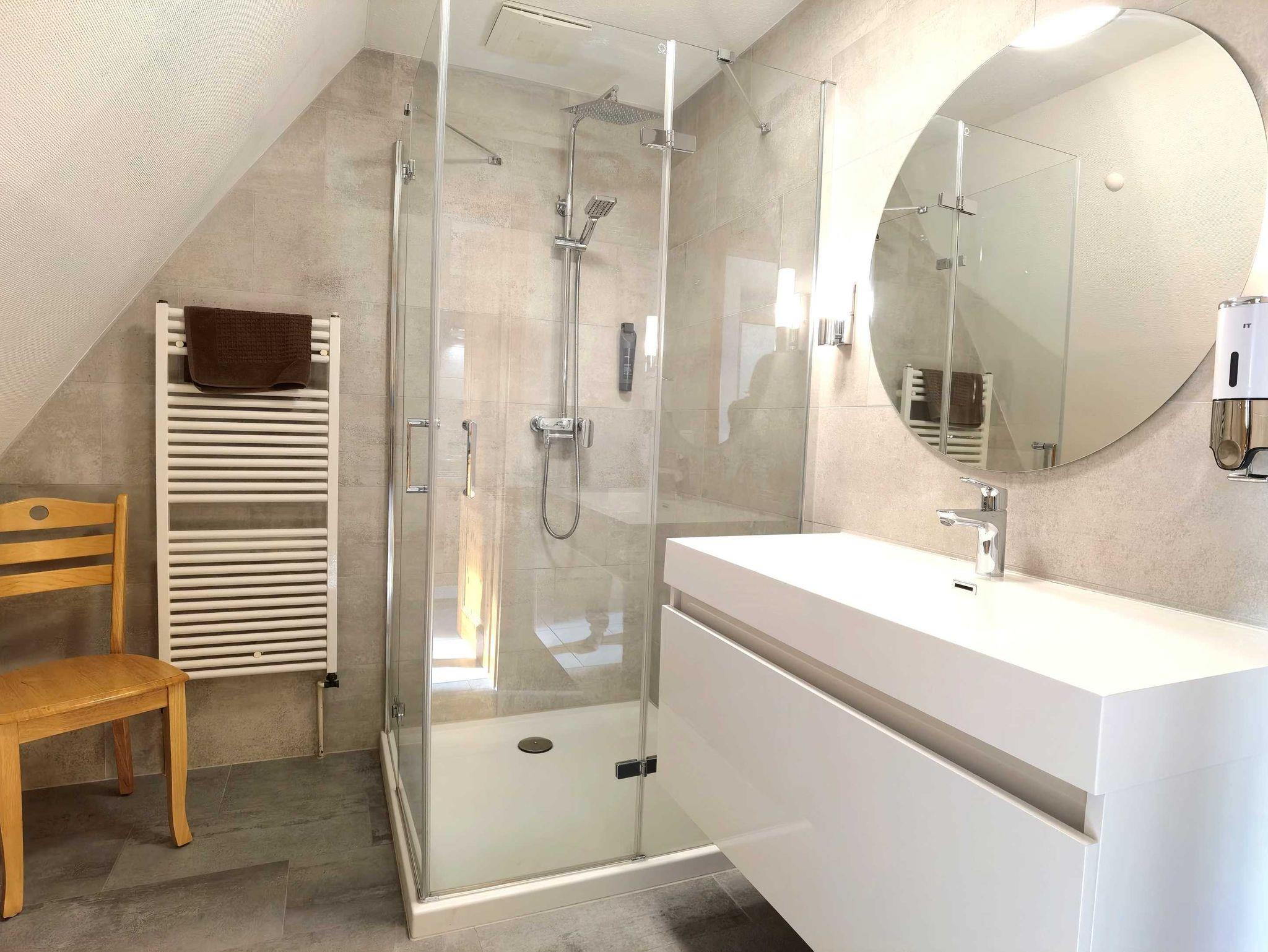 Weiterhin verfügen alle über Badezimmer mit Dusche und WC.