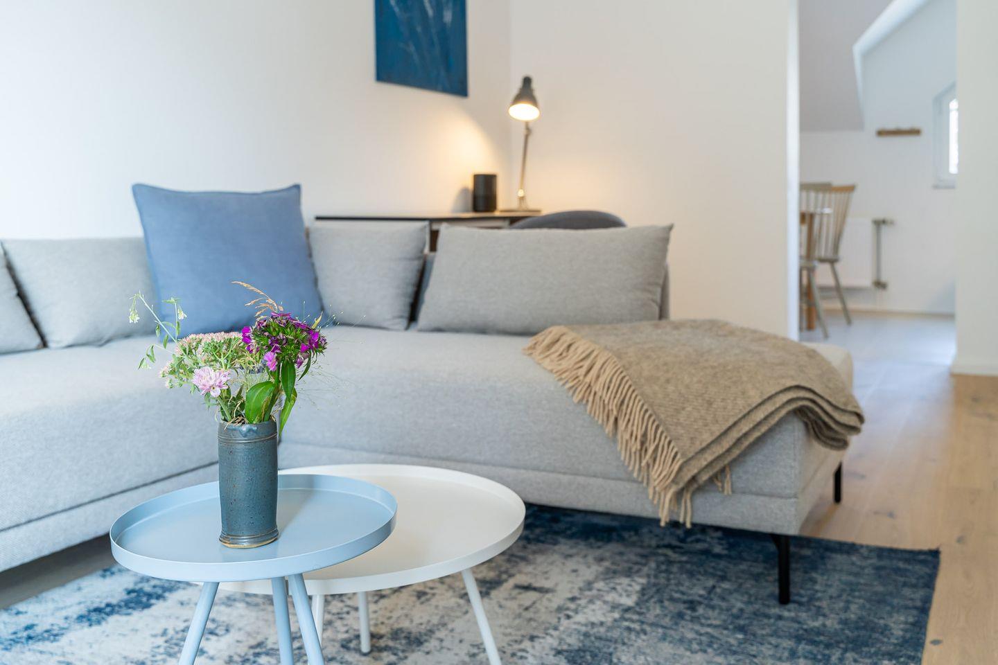 Modernes Apartment Blausand in Ahrenshoop, strandnah gelegen, mit stilvoller Einrichtung und hellem Ambiente für entspannte Ostseeferien.