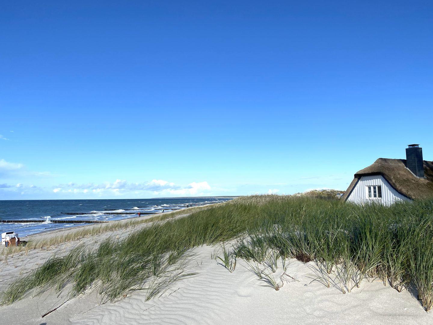 Die Lage zwischen Ostseestrand und Bodden macht diese Ferienwohnung in Ahrenshoop zum idealen Ausgangspunkt für Strandtage, Fahrradtouren oder einen Besuch in einer der zahlreichen Galerien des Ortes.