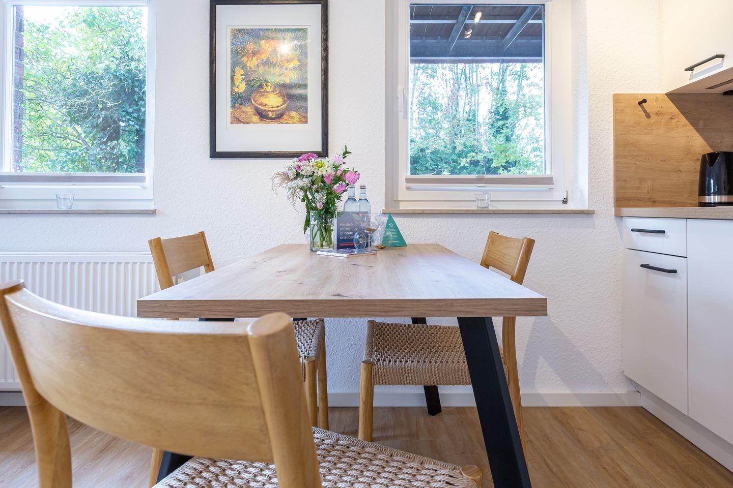 Besonderes Highlight: die eigene Terrasse. Ob Frühstück in der Morgensonne, ein gutes Buch oder ein Glas Wein am Abend - hier wird draußen schnell zum Lieblingsplatz. Eine Wohnung wie gemacht für Paare oder Alleinreisende, die Ahrenshoop in ruhiger, gemütlicher Atmosphäre genießen möchten.