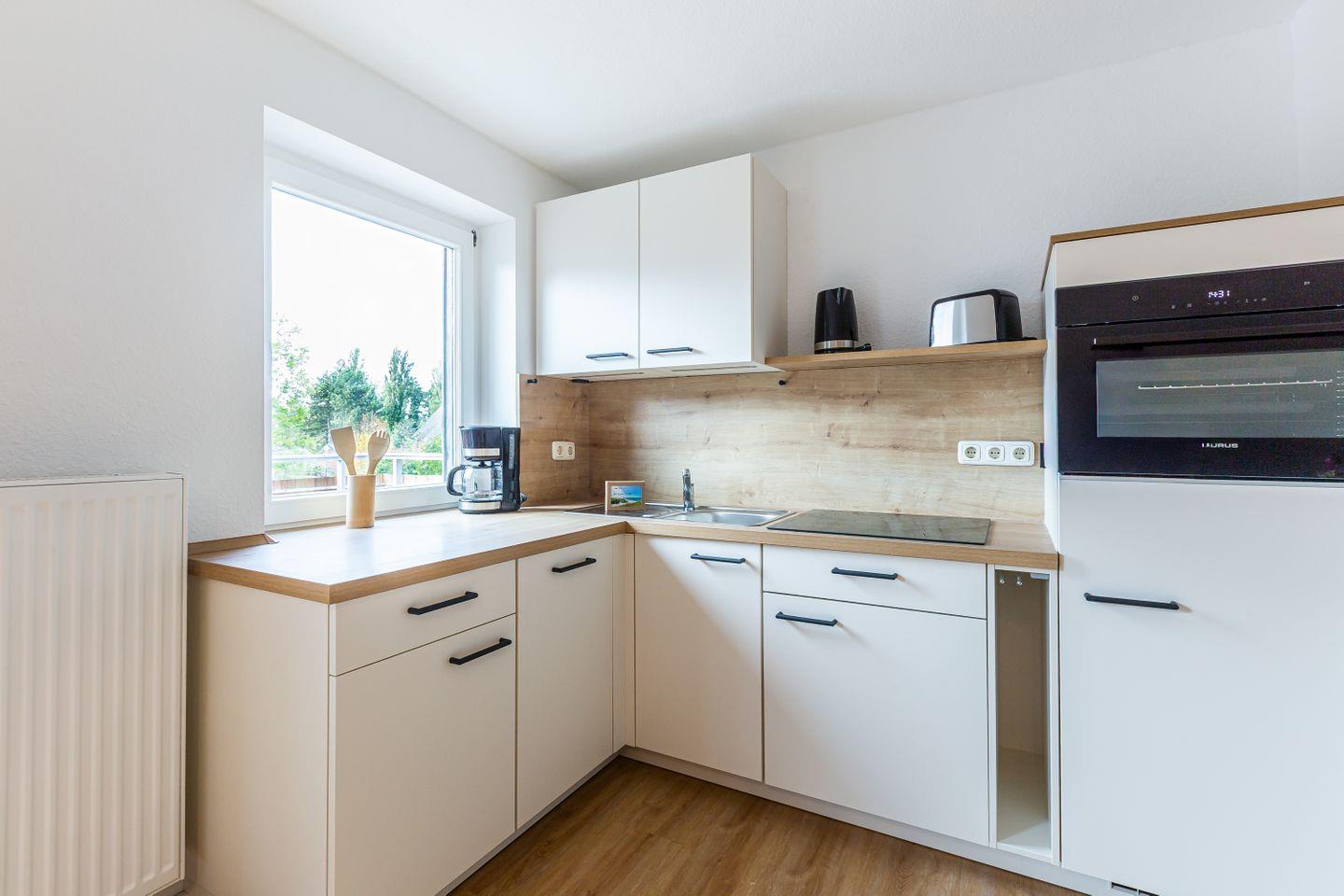 Willkommen in deiner neuen Ferienwohnung, mitten im idyllischen Ahrenshoop. Diese helle und komfortable 3-Zimmer-Wohnung im ersten Stock bietet dir alles, was du für eine entspannte Auszeit an der Ostsee brauchst. Der offene Wohn- und Küchenbereich ist modern und hochwertig möbliert – hier kannst du gemeinsam mit deinen Liebsten kochen, essen und gemütliche Stunden verbringen. Zwei einladende Schlafzimmer sorgen für erholsamen Schlaf nach einem Tag voller Erlebnisse an der frischen Luft. Das Badezimmer ist funktional gestaltet und rundet das Wohlfühlangebot ab.