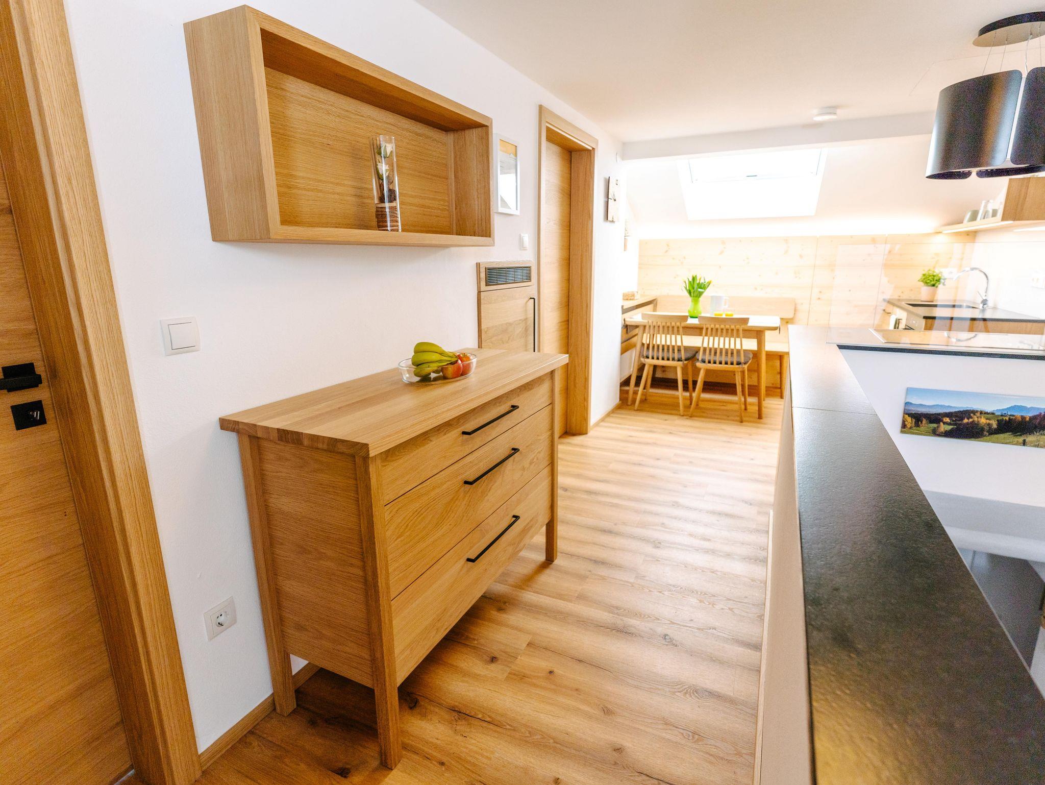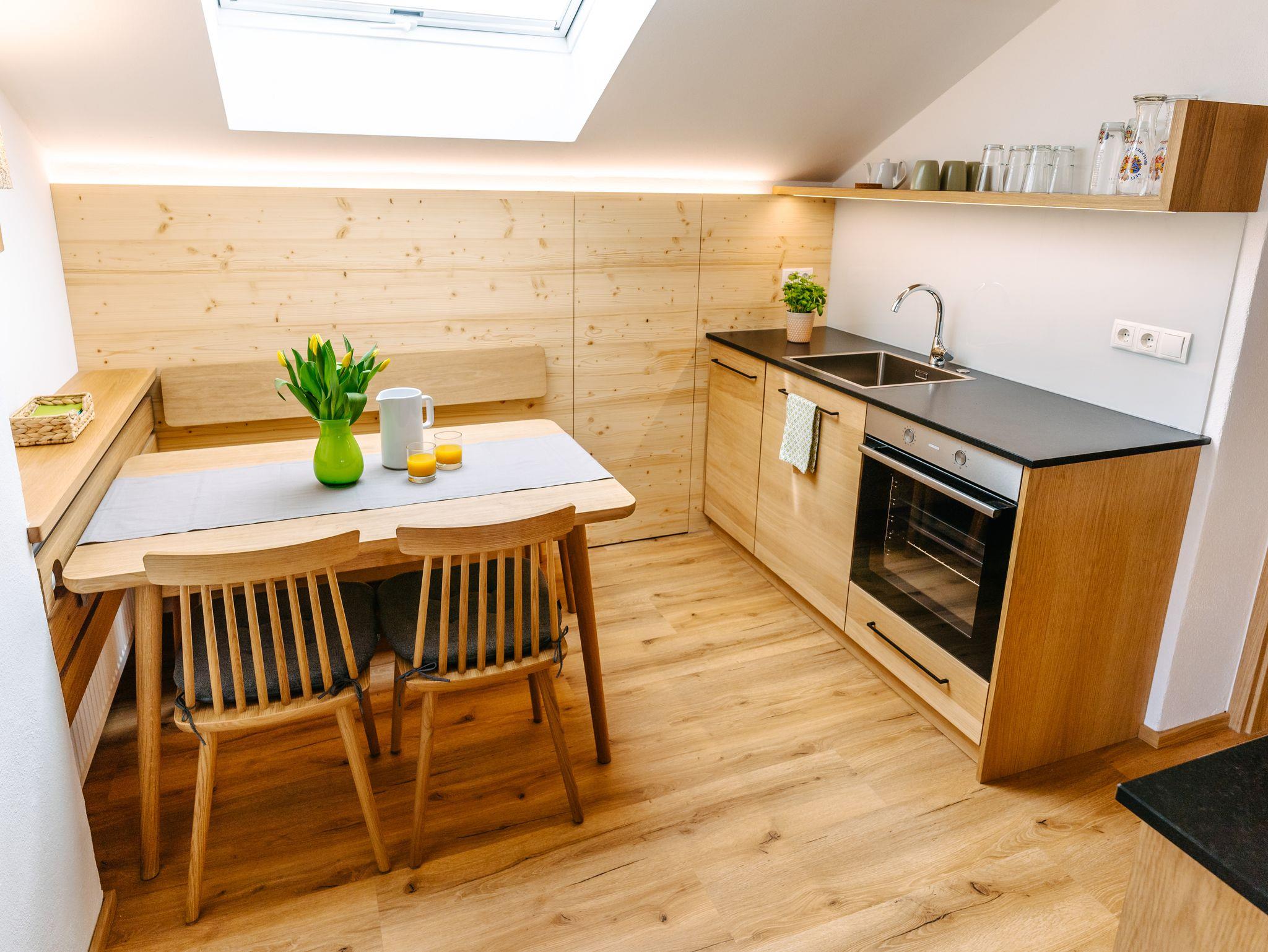 Die neurenovierte Dachgeschosswohung Untersberg ist mit hochwertigen und gemütlichen Möbilar ausgestattet. Genießen Sie dies schöne Aussicht auf die Bergspitzen und auf unseren großen Spielplatz.