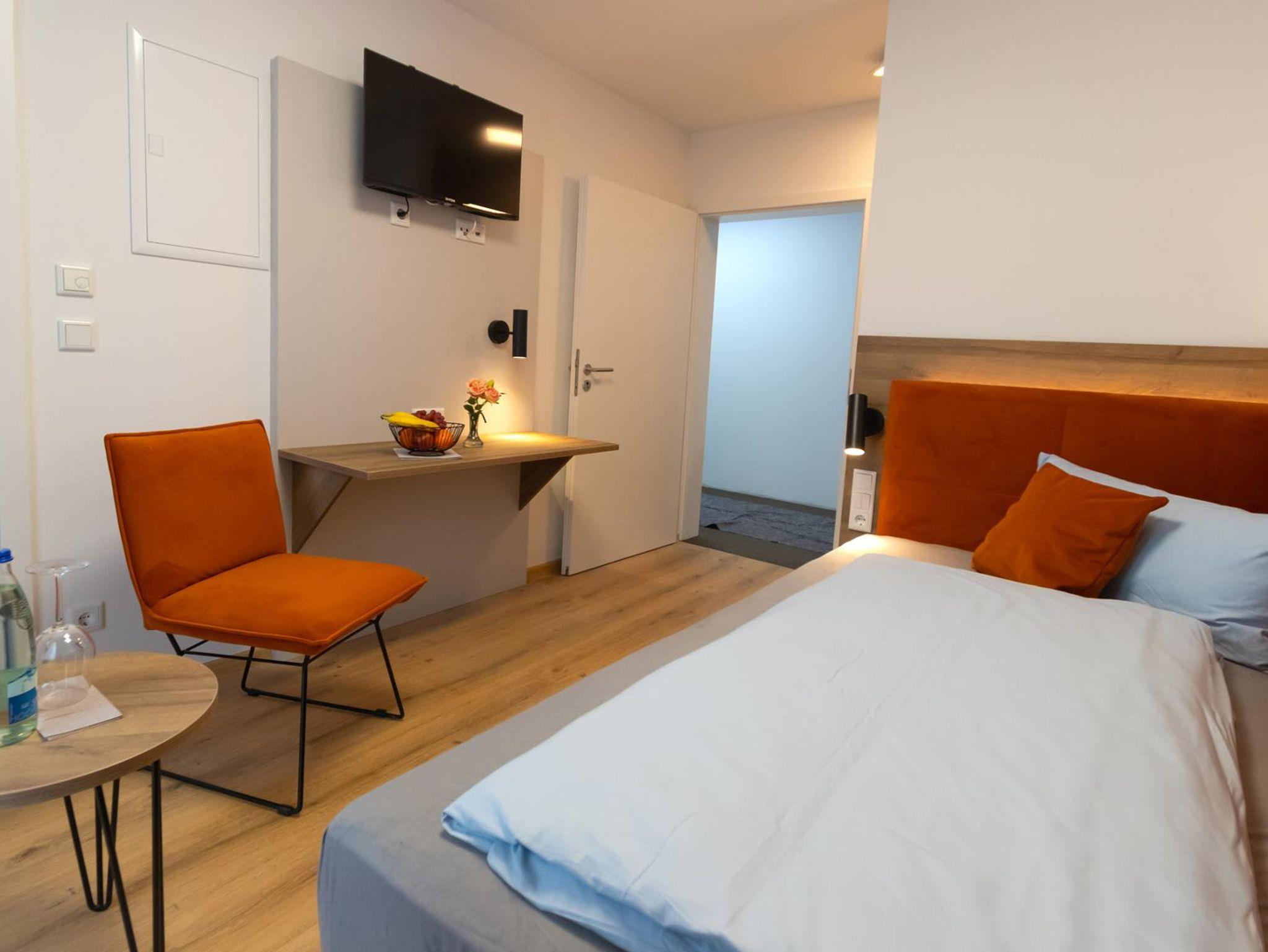 Barrierefreier Haupteingang, alle Zimmer sind mit Fußbodenheizung und Bäder mit Lüftungsanlage. Großes Doppelfenster mit Verdunklungsmöglichkeit (Rollo). Smart-TV und kostenloses W-lan mit Glasfaseranschluss. Großzügige Garderobe mit Kofferablage. Schreibtisch mit 2 bequemen Polsterstühlen. Bad mit Waschbecken, Haartrockner, WC und barrierefreier Dusche, mit nachhaltiger Handseife und nachhaltigem Duschgel. Willkommenswasser und etwas Obst für jeden Gast.