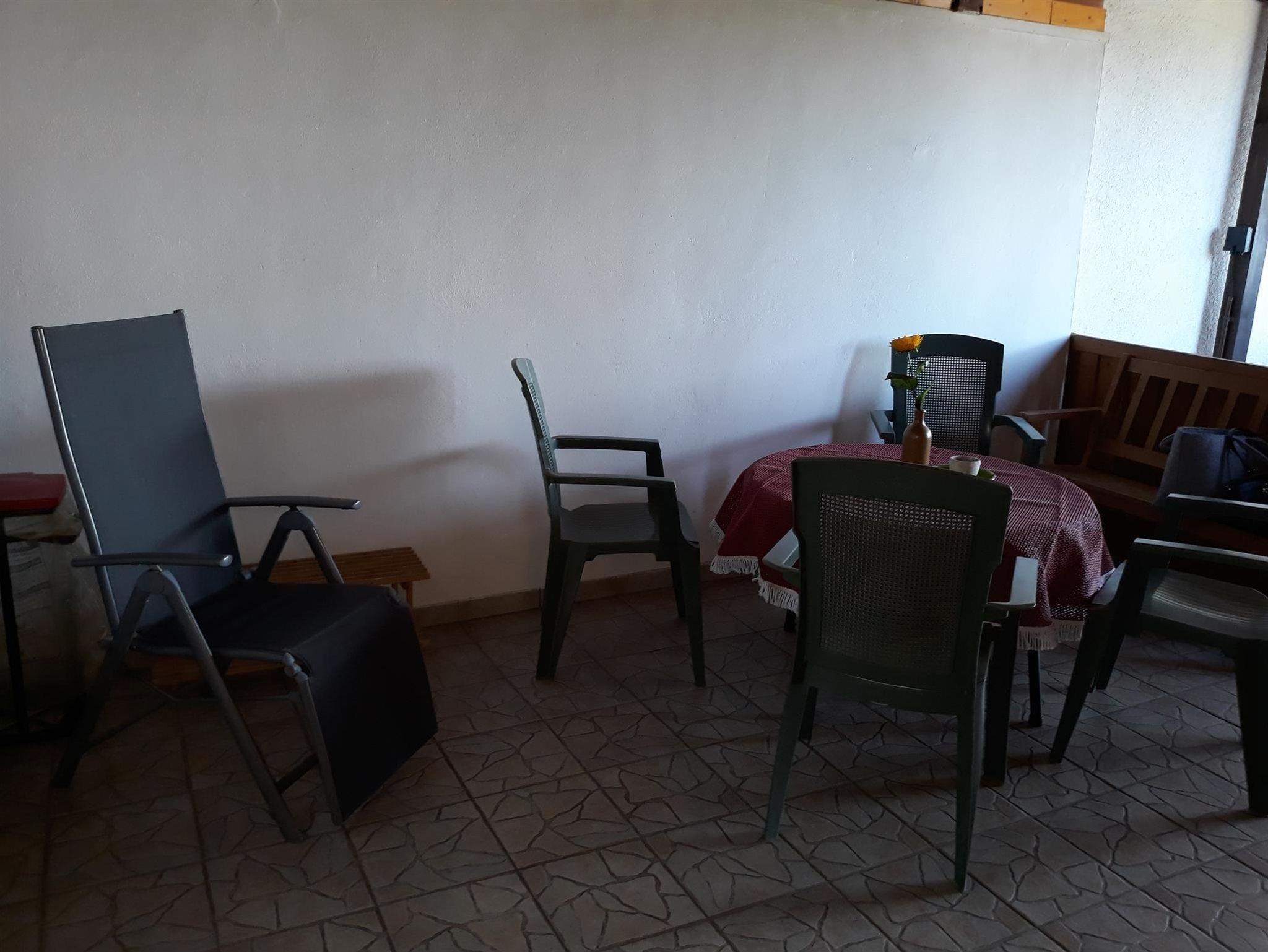 Ein überdachter Abstellplatz für das Auto und eine Terrasse sind auch vorhanden.