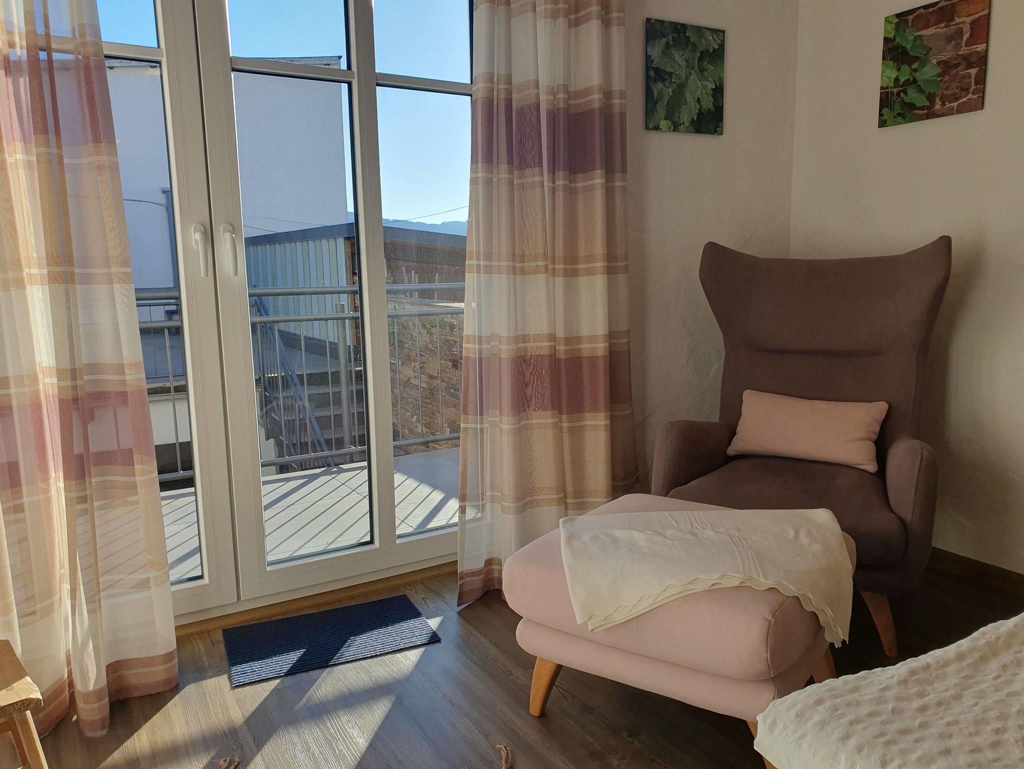 Unser Aufenthaltsraum verfügt über eine Küchenzeile, die ähnlich wie in einer Ferienwohnung ausgestattet ist (ohne Herd und Backofen) und zur Selbstversorgung bzw. Bereitung eines Frühstücks genutzt werden kann. Dort befindet sich neben einem Kaffeevollautomat, auch ein Wasser- u. Eierkocher und ein Toaster. Ein Kühlschrank mit gekühlten Getränken und für Ihre Vorräte steht ebenfalls zur Verfügung. Ihr benutztes Inventar kann dann bequem in die Spülmaschine eingeräumt werden. Allen Gästen steht zusätzlich eine Terrasse zur Verfügung. Im Hof befinden sich zwei Parkmöglichkeiten, weitere in 200 m Entfernung am Moselufer. Im Innenhof können auch Ihre Fahrräder abgestellt werden (kein abgeschlossener Bereich). Ein Schiffsanleger sowie die Bushaltestelle befinden sich in 200 m Entfernung. Zahlreiche Rad- und Wanderwege starten in unmittelbarer Nähe.