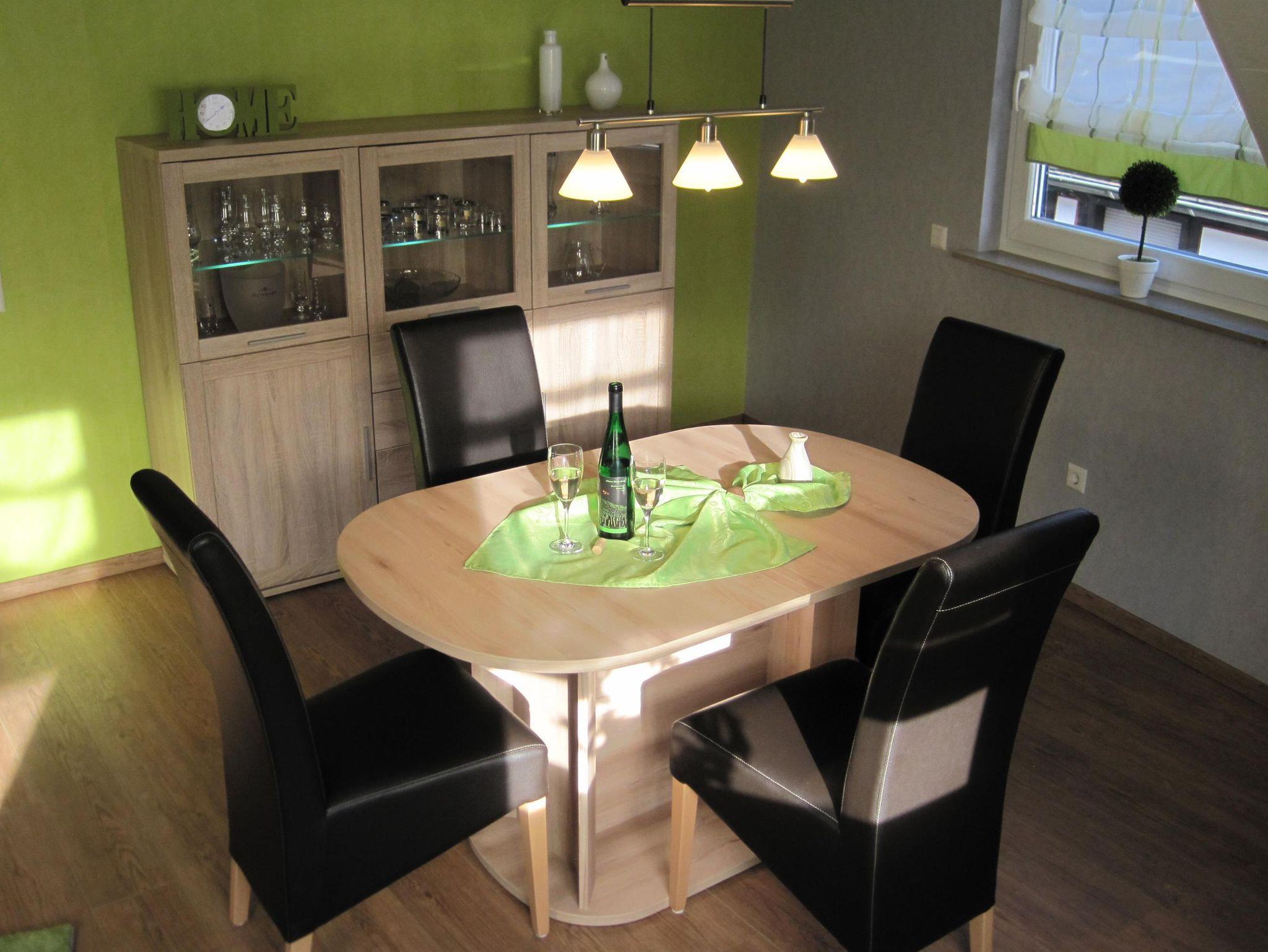 Viele kleine Details und Applikationen verleihen der Ferienwohnung ihren eigen Charme, so dass sie sich als Gast sofort wohlfühlen und ab der ersten Minute ihren Urlaub genießen können. Die Wohnung ist eine Nichtraucherwohnung und selbstverständlich stellen wir Ihnen kostenloses WLAN zur Verfügung! Ihnen stehen in der zweiten Etage 95 m² Wohnfläche zur freien Verfügung, die noch durch eine großzügige Terrasse (ca. 22 m²) ergänzt werden. Die Wohnung ist für maximal vier Personen ausgelegt. In Ihrer Ferienwohnung finden sie u.a.: Eine gut ausgestattete Küche, die für jede Mahlzeit die beste Ausstattung bietet. Das großzügig bemessene Wohnzimmer ist der zentrale Raum in unserer Ferienwohnung. Die Beleuchtung, kleine Accessoires und der große Flachbildfernseher runden den Aufenthalt im Raum ab. Zwei Schlafzimmer mit besonders guten Matratzen und Kopfkissen garantieren Ihnen einen erholsamen und gesunden Schlaf. Die Bettwäsche wird gestellt. Das Badezimmer bietet mit Doppelwaschbecken, großem, beleuchteten Spiegel, Badewanne, Dusche und WC alles, was man für eine wohltuende Körperpflege benötigt. Handtücher sind selbstverständlich vorhanden und werden bei Bedarf oder wöchentlich gewechselt. Außerdem stehen Ihnen ein Fön und ein Schminkspiegel zur Verfügung. Ein Gäste WC. Auf unserer großen Terrasse (ca. 22 m² ), auf der Sie einen herrlichen Ausblick auf die Weinberge, die Burg Thurant und die Mosel haben, können Sie herrlich entspannen oder in gemütlicher Runde den Tag, bei einem guten Wein, revue passieren lassen. Außerdem gehören zur allgemeinen Ausstattung: Eine Garderobe sowie ein Mehrzweckschrank mit Wäscheständer, Bügeleisen und Bügelbrett, Reinigungsmittel, Toilettenpapier sowie Geschirrtücher und Rauchmelder. Die Wohnung verfügt über einen Kinderhochstuhl, Kinderreisebett kann gestellt werden.