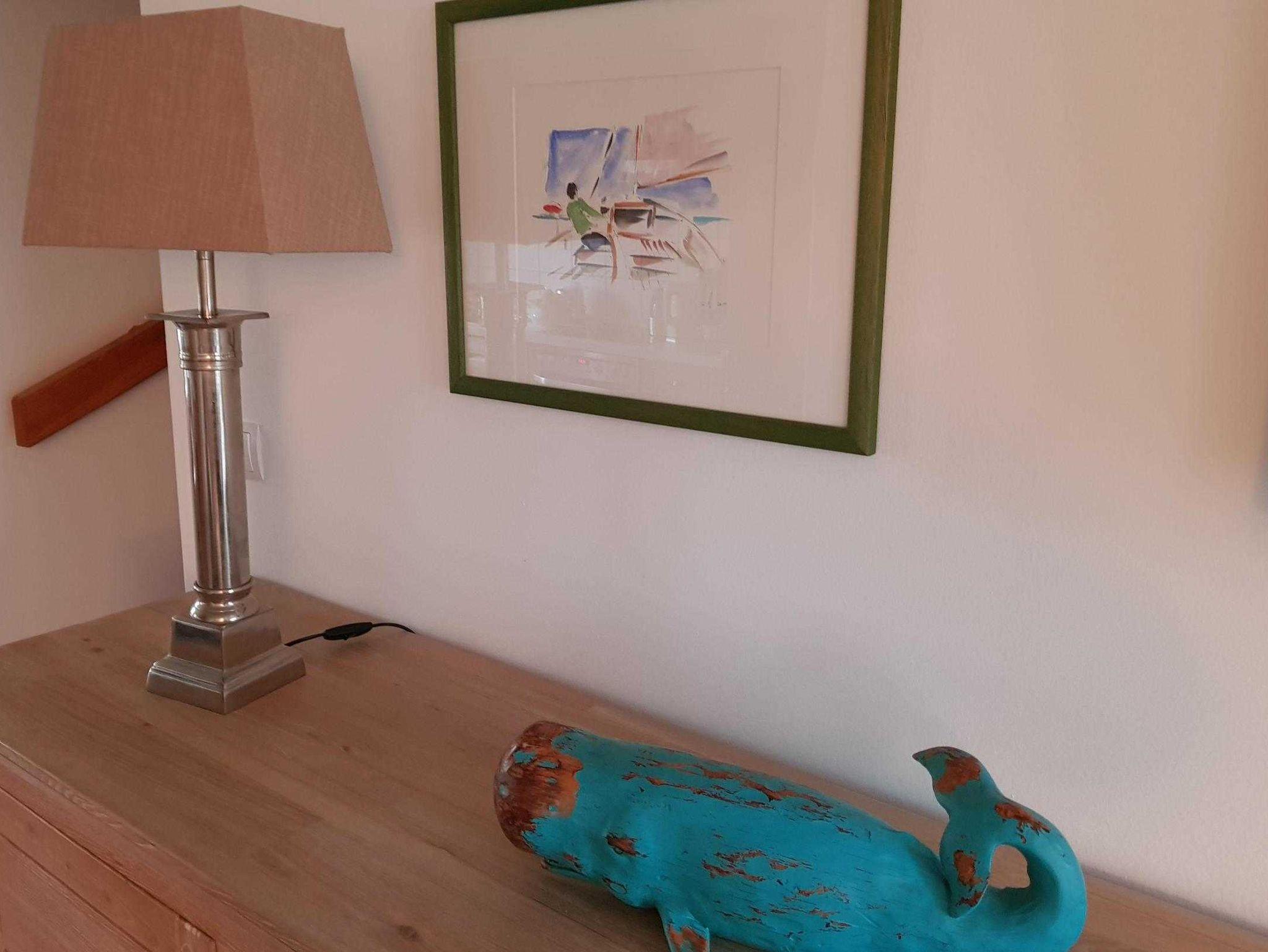 Es liegt in absolut ruhiger Lage am Rande des Ortes und bietet idyllische Ferien auf Föhr im historischen Ortskern des Kurortes Alkersum, eingebettet in Geest und Marsch, die unsere Besucher zu Fuß oder per Fahrrad zur Erkundung von Flora und Fauna einladen.Im Ortskern des Kunst- und Pferdedorfes Alkersum - im Herzen der schönen Insel Föhr, der friesischen Karibik.Ein Bäcker, sowie der Hofladen Föhrer Inselkäse, befinden sich in unmittelbarer Nähe und sind fußläufig zu erreichen (ca. 200m). Unser Hausteil befindet sich in einem historischen Gebäudekomplex als Mittelhaus.