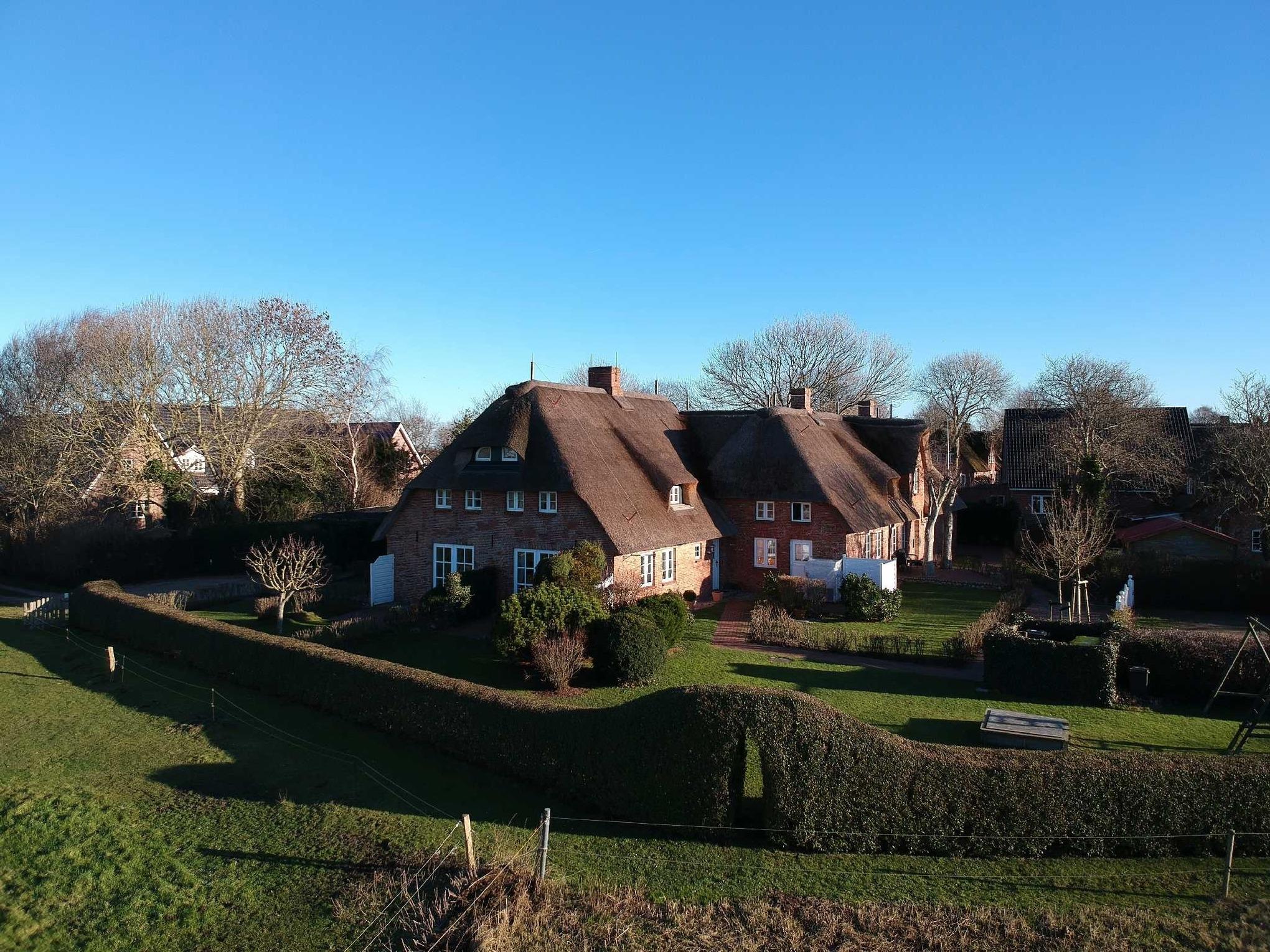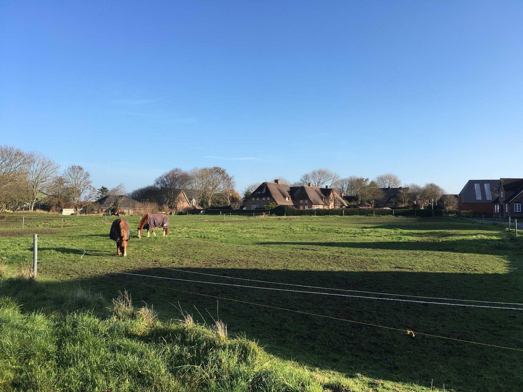 Durch ihre Lage im zentralen Inseldorf Alkersum bietet die Wohnung kurze Wege zu allen Sehenswürdigkeiten der Insel. Zahlreiche reetgedeckte Häuser im Ortskern, Pferdeweiden und Stallungen sowie das überregional bekannte Museum Kunst der Westküste prägen den Charakter des historischen Dorfes. Auch ein Bäcker und ein Hofladen im Ort sind nur wenige Gehminuten entfernt.