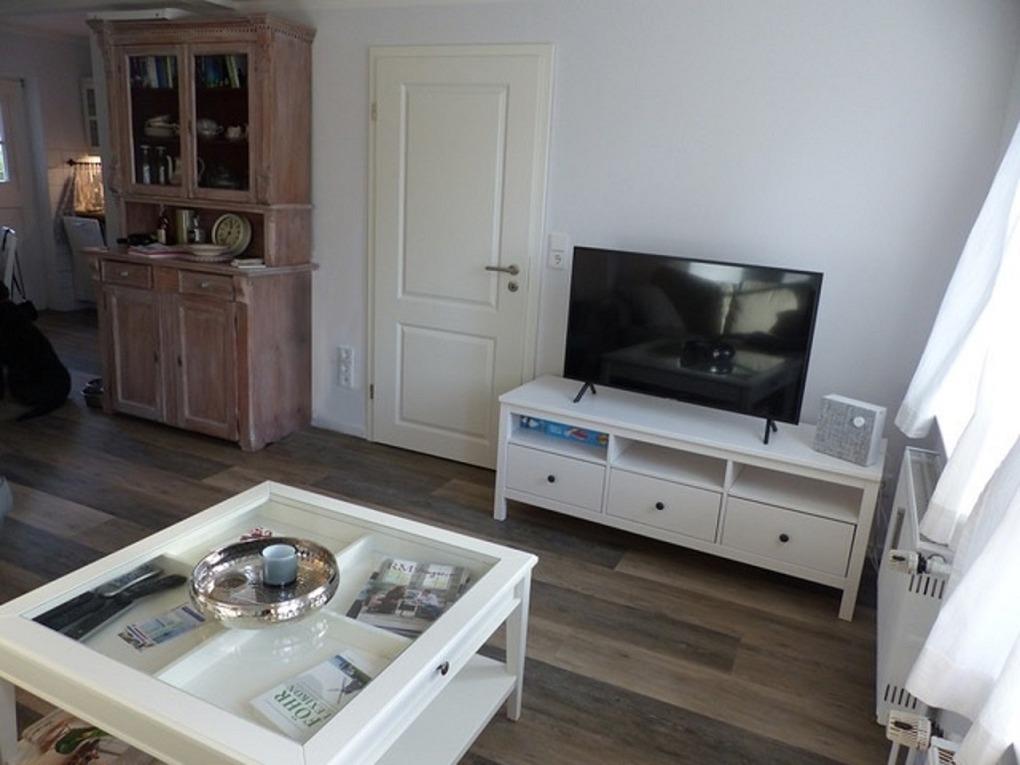 Die vollständig modernisierte Maisonette - Wohnung "Reetkehlchen" erwartet Sie mit heller, freundlich einladender Atmosphäre auf 50 qm. Im Erdgeschoss befindet sich der Wohnbereich, der in die Küche mit gemütlichem Essplatz übergeht. Über die offene Treppe gelangen Sie in die Galerie mit großem Doppelbett und Bad mit neuer großer Dusche.