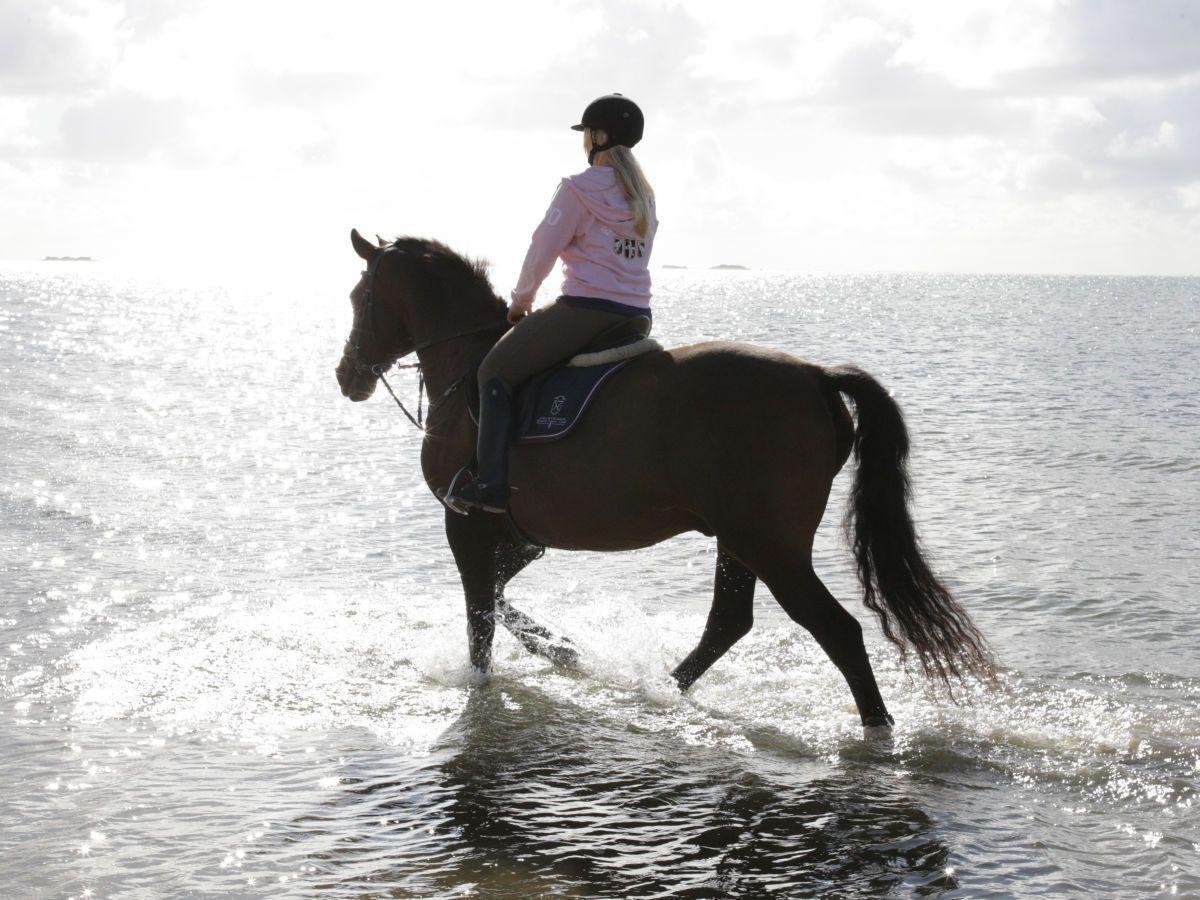 Gemütliche Ferienwohnung "Herzmuschel" in Alkersum mit Balkon und Blick auf Reiterhof, ideal für Ruhe und Naturgenuss.