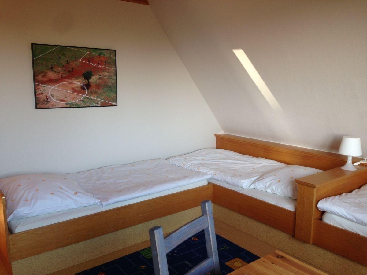 Die Ferienwohnung ist ausgestattet mit einem Schlafzimmer mit Doppelbett und einem Zimmer mit 3 getrennt stehenden Betten. Im Wohnzimmer finden Sie eine große Küchenzeile, die wie folgt ausgestattet ist: Kühlschrank, Elektroherd mit 4 Platten und Backofen, Spülmaschine, Mikrowelle, Kaffeemaschine, Toaster, Wasserkocher. Das helle Badezimmer ist mit einem großen Tageslichtfenster und mit einer Dusche ausgestattet.