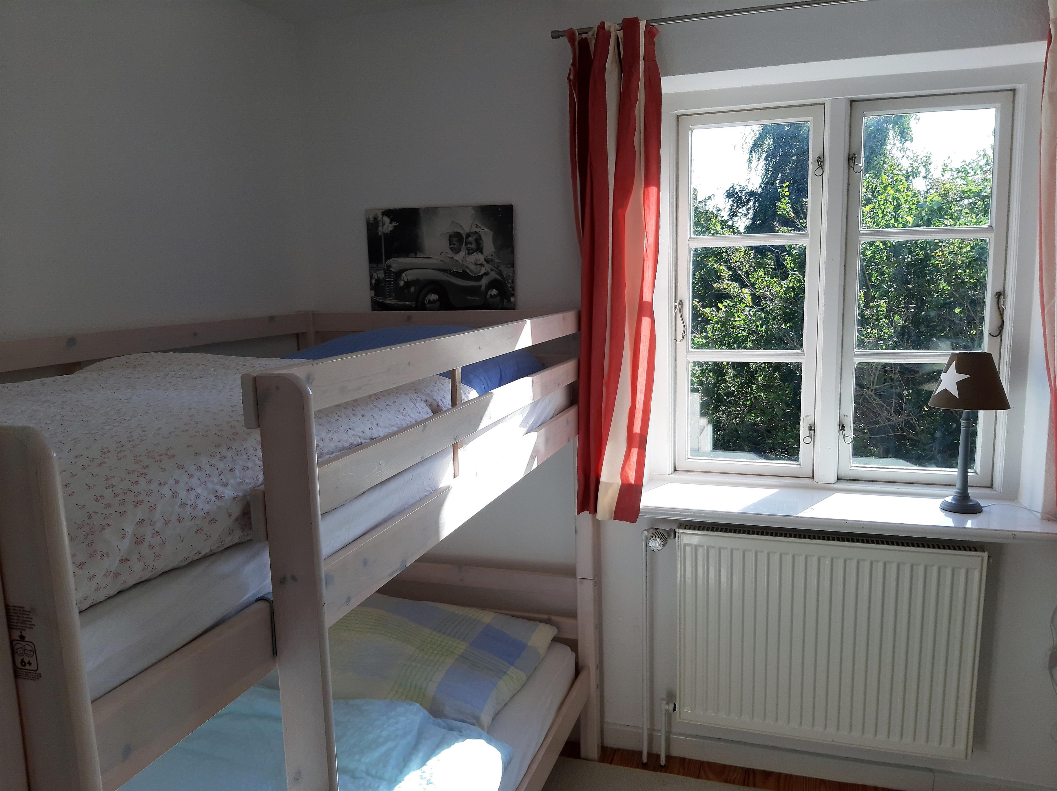 Das angrenzende Kinderzimmer ist mit einem Etagenbett (je 0,90 × 2,00 m) ausgestattet und bietet ausreichend Platz für Kinder.