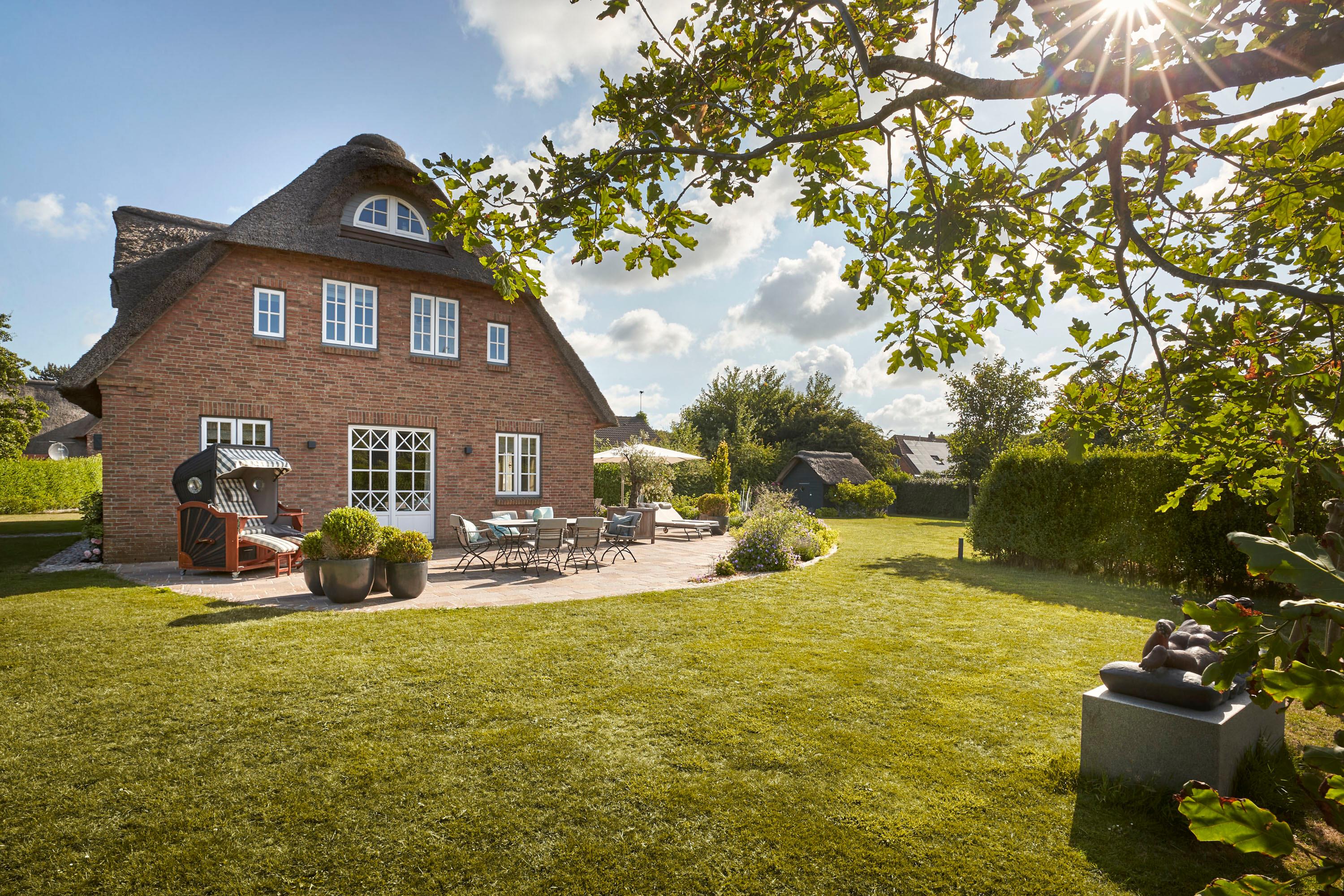 Ein typisches Friesenhaus mit wunderschöner Architektur und einer Menge liebevoller Details wie schöne Fliesen, Holzsprossenfenster und Holzarbeiten. Der großzügige Garten mit seinen 2 Terrassen und die traumhafte Randlage mit Blick in die Marsch bieten Ihnen ein Umfeld, wie Sie es auch auf der Insel Föhr nicht oft wiederfinden. Hier werden Sie gelassen und entspannt Ihren Urlaub verbringen, weit weg vom Trubel der Großstadt. Trotzdem bietet Ihnen das kleine Örtchen Alkersum Einkaufsmöglichkeiten und Gastronomie. Wem das nicht reicht, der kommt im nahegelegenen Friesenort Nieblum sicher auf seine Kosten oder startet gleich ins ca. 5 km entfernt gelegene Städtchen Wyk. Besonders die Reiterfreunde sind in Alkersum herzlich willkommen. Seien Sie unser Gast.