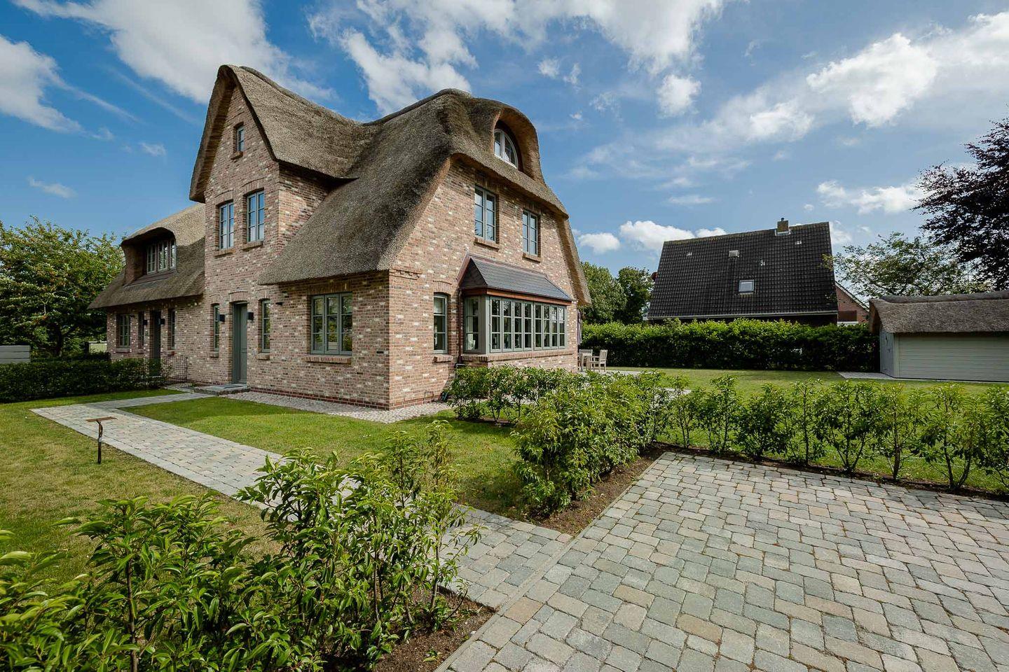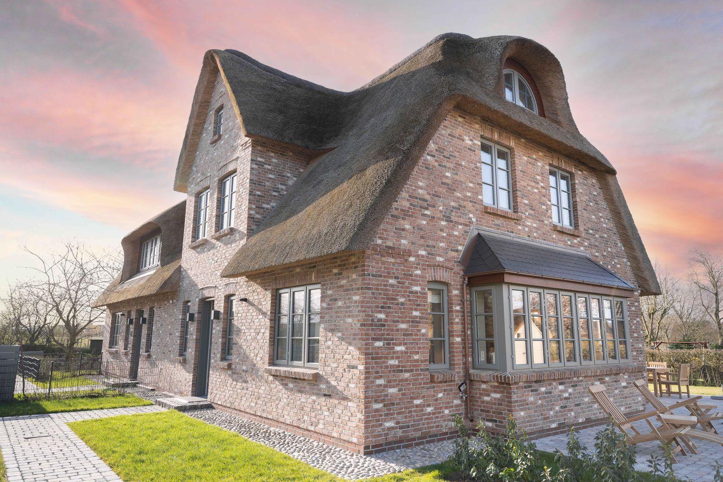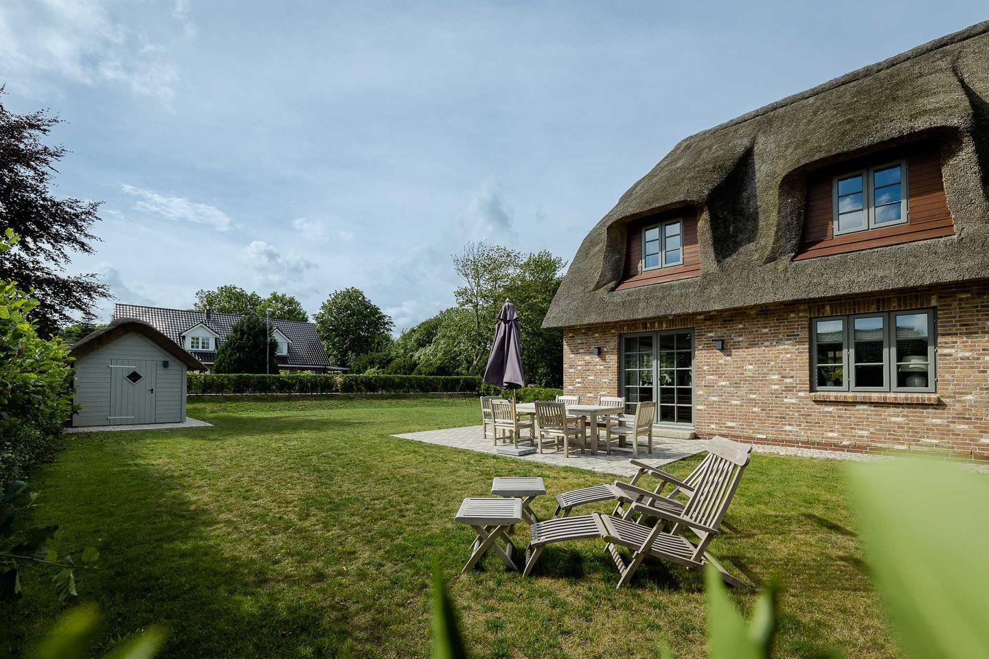 Reetgedeckte Doppelhaushälfte mit Kamin, Sauna und zwei Terrassen.