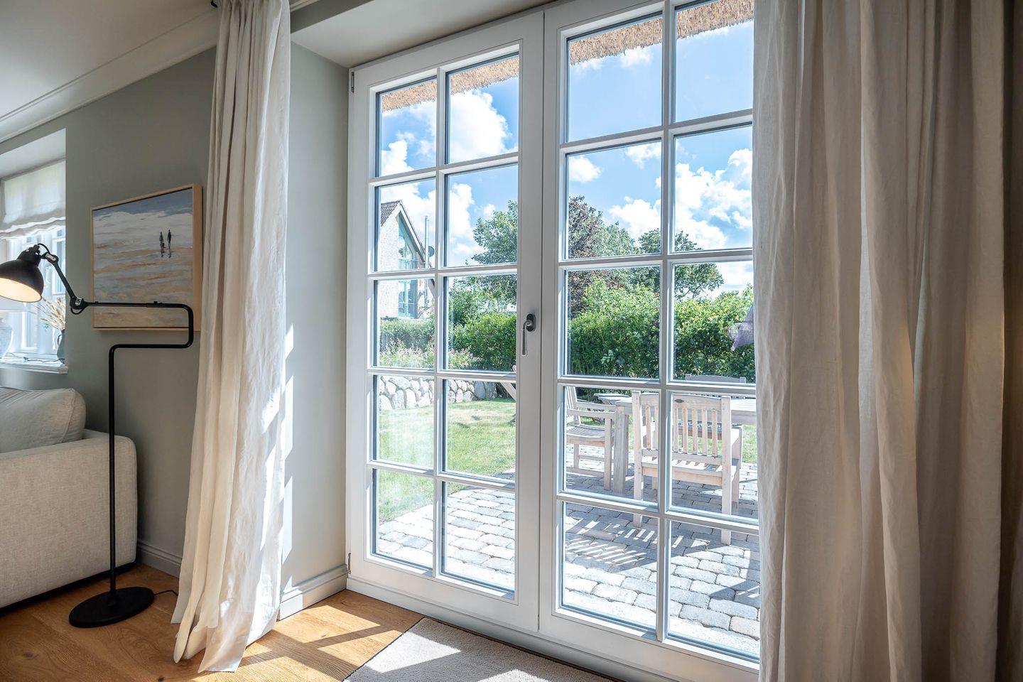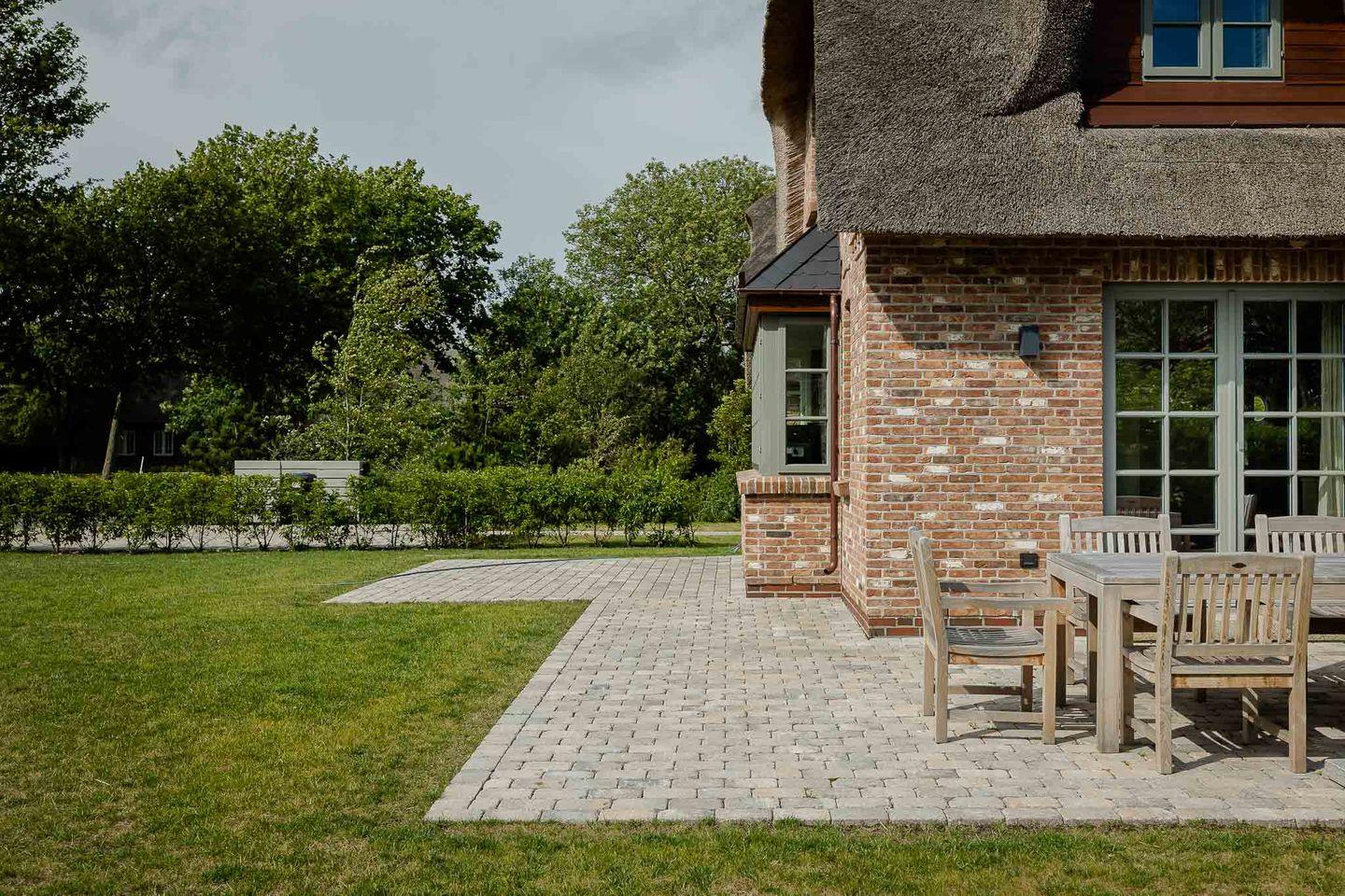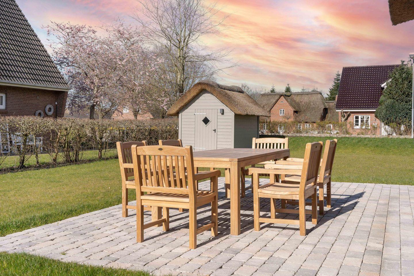 Reetgedeckte Doppelhaushälfte mit Kamin, Sauna und zwei Terrassen.
