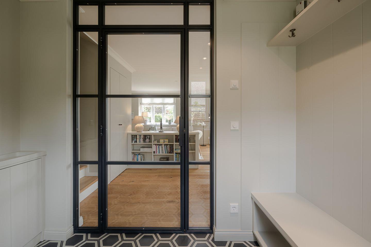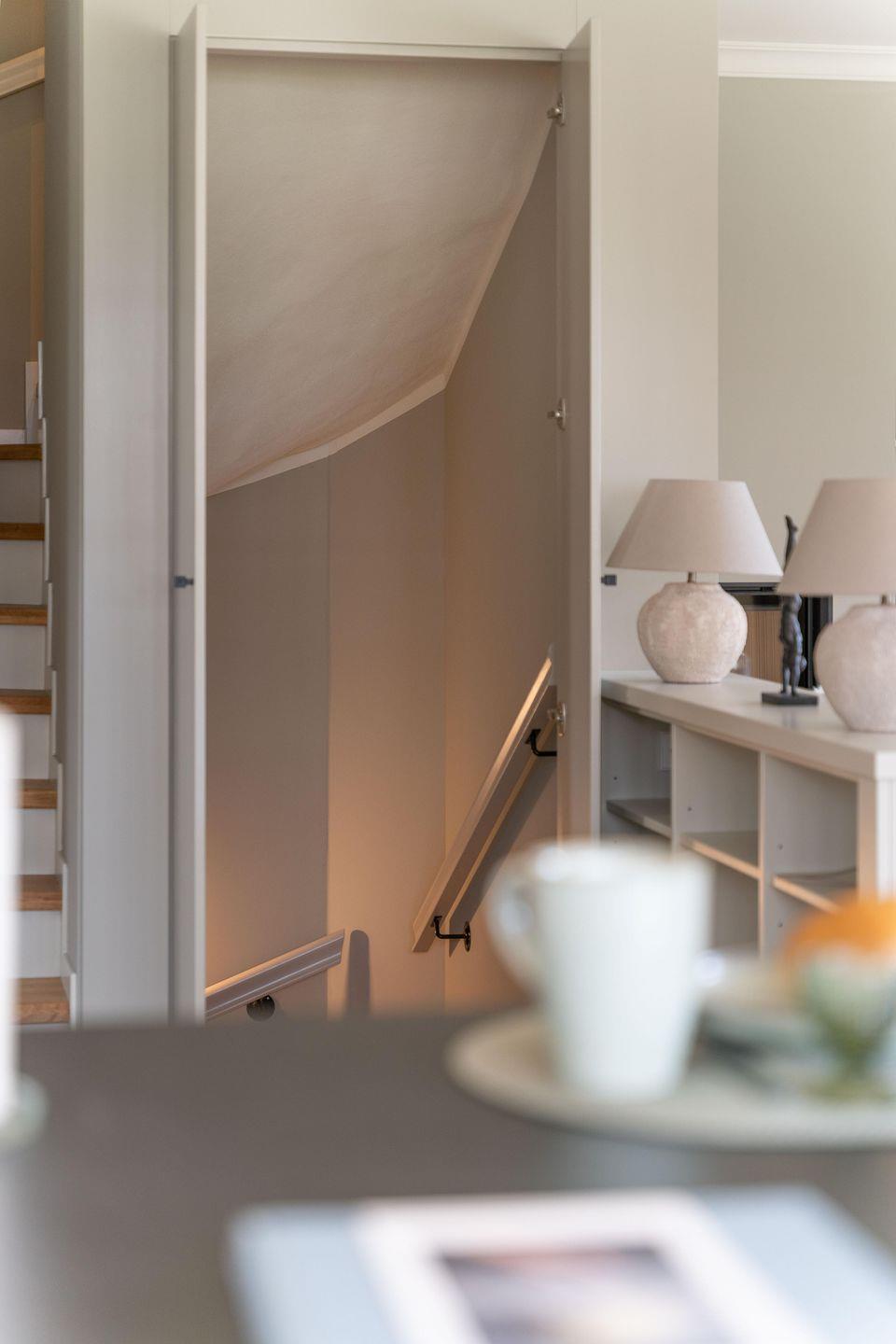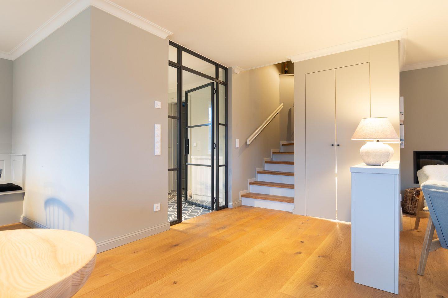 Beim Betreten des Hauses werden Sie in der offenen Diele empfangen. Die handgefertigte Garderobe bietet ausreichend Platz für Jacken und Schuhe Ein vollwertiges Duschbad befindet sich gegenüber der Garderobe, gleich links vom Eingang.