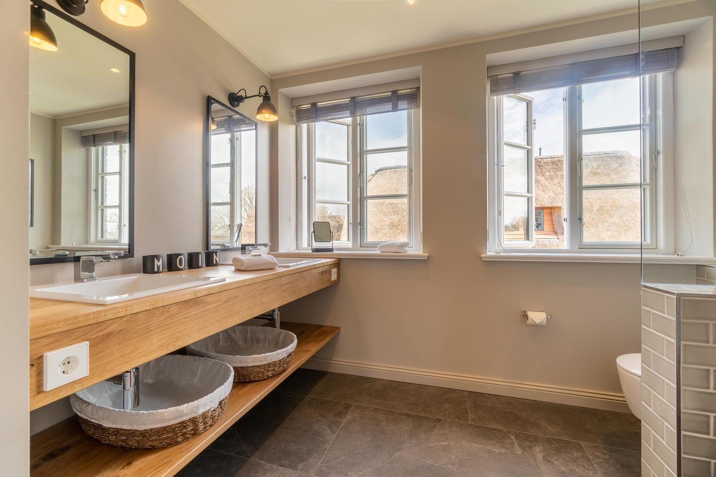 Die exklusive und hochwertig eingerichtete, reetgedeckte Doppelhaushälfte Amalias Hüs wurde im Jahr 2022 fertiggestellt und verfügt über 3 Schlafzimmer, 2 Bäder und bietet somit komfortablen Platz für bis zu 5 Personen. Zuzüglich ist eine Kleinkinderaufbettung möglich. Allergikerfreundliche Hunde sind ab September 2026 herzlich willkommen.