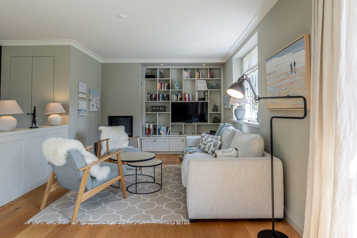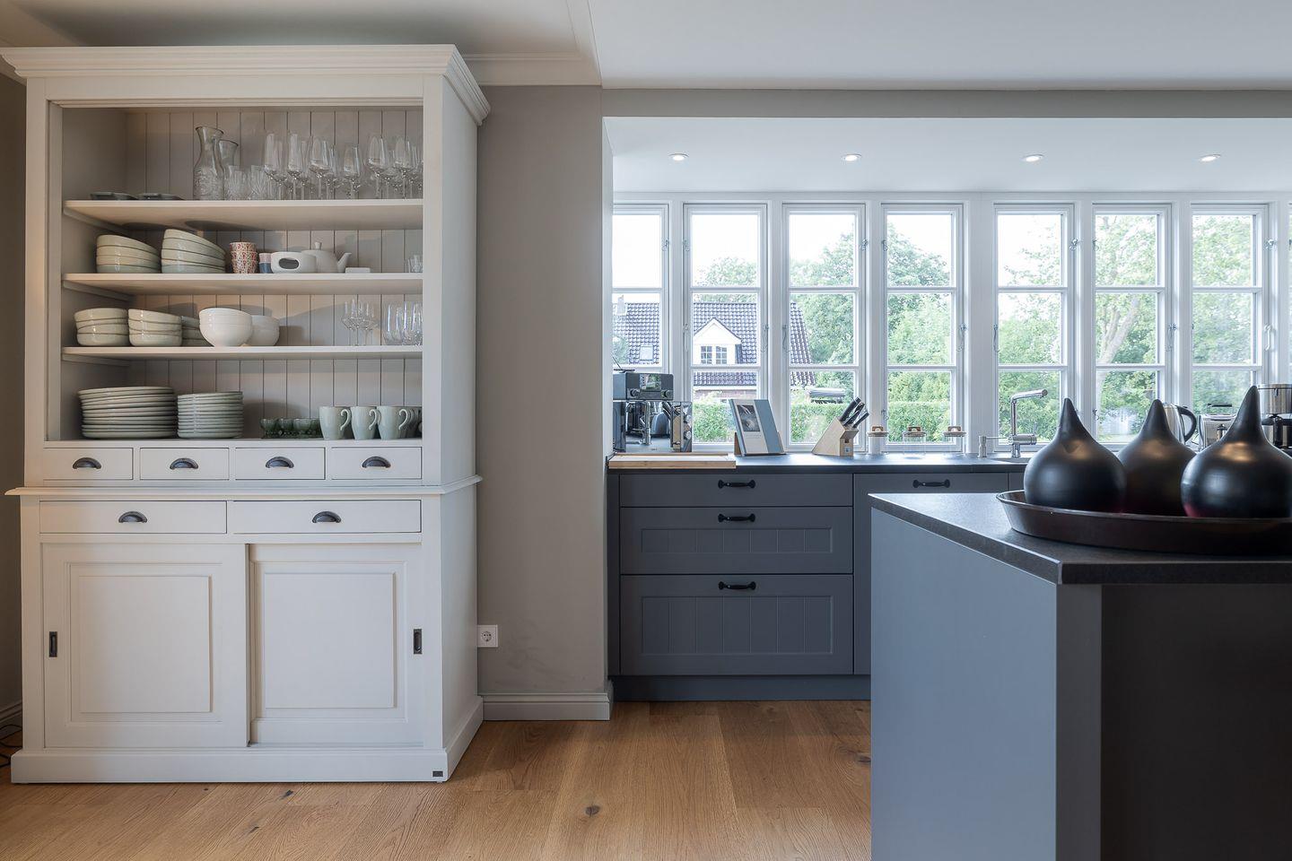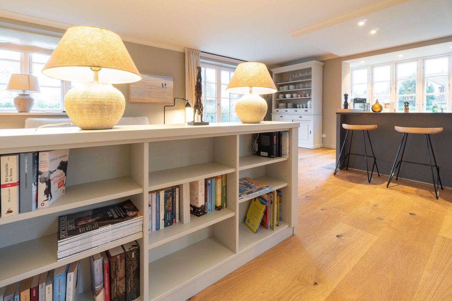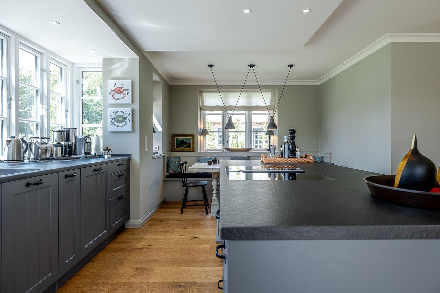 Im Zentrum des hellen Erdgeschosses steht die hochwertige, offene Küche. Umfangreich ausgestattet mit großen Induktionsfeld, zweitem Kühlschrank und nützlichem Zubehör sind alle Voraussetzungen für gesellige Abendessen im anspruchsvoll eingerichteten Essbereich geschaffen. Gleiches gilt für den Wohnbereich, der mit knisterndem Kaminfeuer und gemütlichen Sofa zu einem entspannten Ausklang des Tages einlädt.