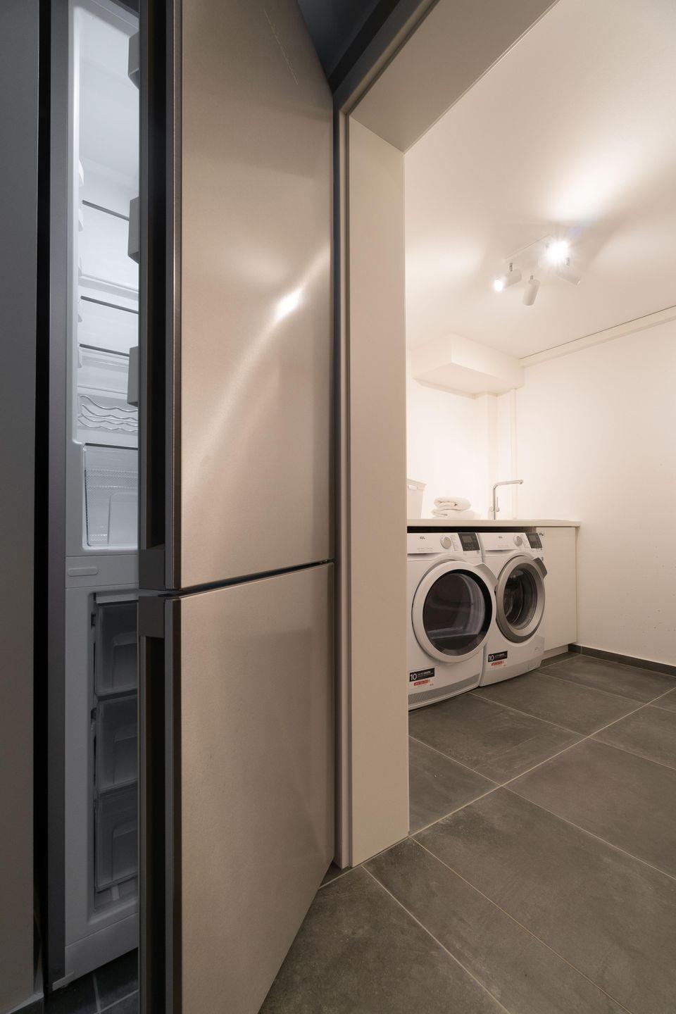 Im Souterrain befindet sich ein Hauswirtschaftsraum mit Waschmaschine und Trockner, sowie einen großen Kühlschrank mit Gefrierfunktion.