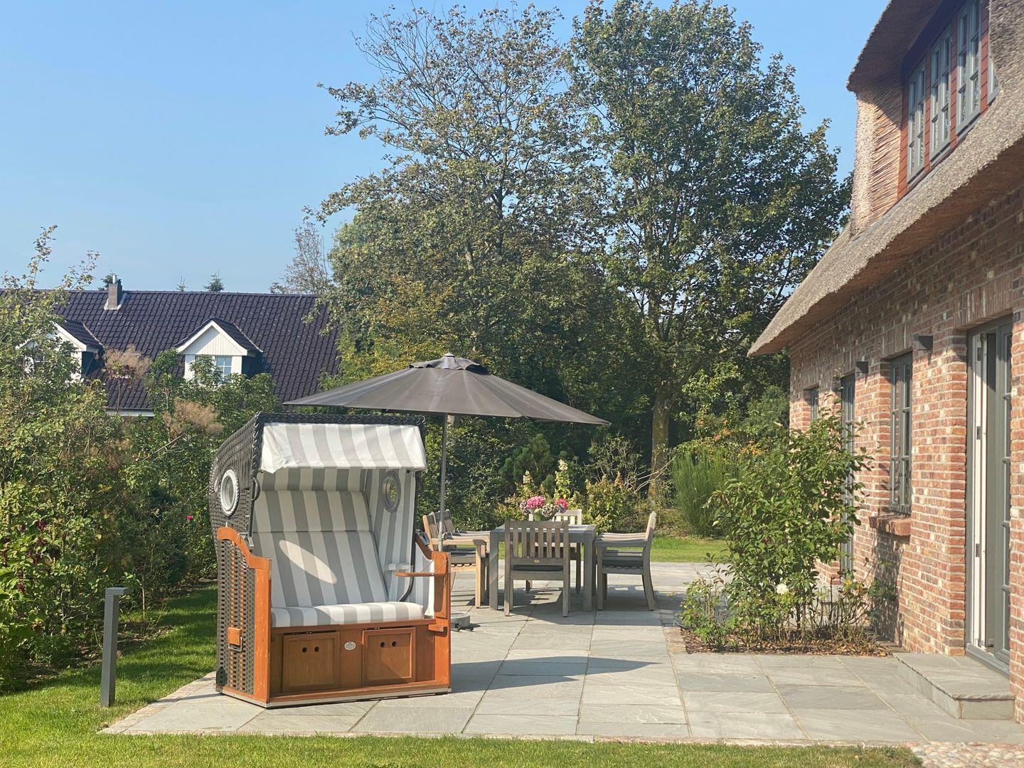 Exklusives 2021 erbautes Reetdachhaus, fußläufig entfernt vom Museum Kunst der Westküste, mit hochwertiger Ausstattung, eigener Sauna und Kamin sowie gepflegtem Garten mit großer Südterrasse und einem Strandkorb.