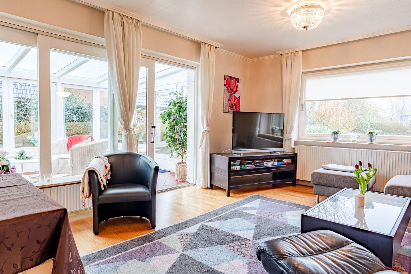 Die Ferienwohnung ist im Erdgeschoss gelegen und verfügt über einen großzügigen Wohn- und Essbereich mit separater Küche, zwei Schlafzimmer, einen Wintergarten, ein Duschbad und ein Gäste-WC, sowie einen gemeinschaftlich genutzter Hauswirtschaftsraum mit Wachmaschine und Trockner. Die Schlafzimmer sind mit einem Doppelbett bzw. zwei Einzelbetten ausgestattet. Über das Doppelbettzimmer und den Wohnbereich gelangen Sie in den Wintergarten und von dort aus direkt auf die eigene Terrasse und in den Garten.