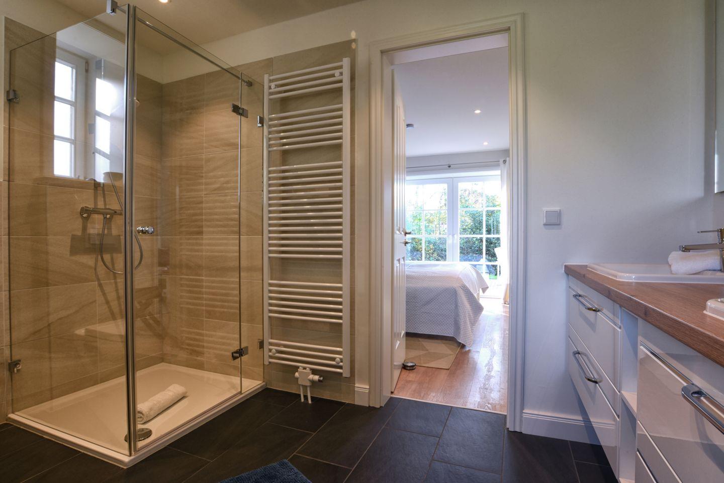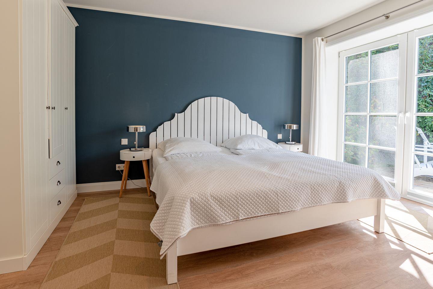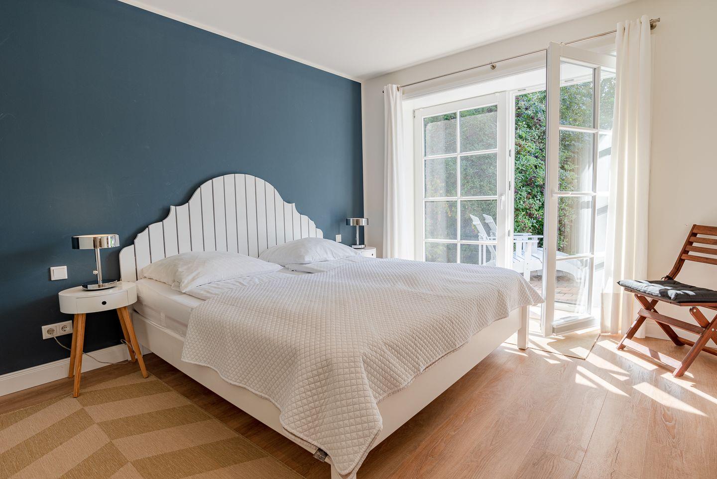 Der großzügige Wohnbereich verfügt über eine schöne Sofalandschaft, einen Esstisch sowie über eine offene Küche. Von hier aus gelangen Sie auf die Terrasse mit Garten sowie in das Schlafzimmer mit Doppelbett, welches ebenfalls einen direkten Terrassenzugang bietet. Das zweite Schlafzimmer ist mit zwei Einzelbetten ausgestattet. Von einem kleinen, zweiten Flur aus gelangen Sie in das Gäste-WC sowie in das Bad mit Wanne und Dusche, von welchem Sie ebenfalls das Elternschlafzimmer erreichen.