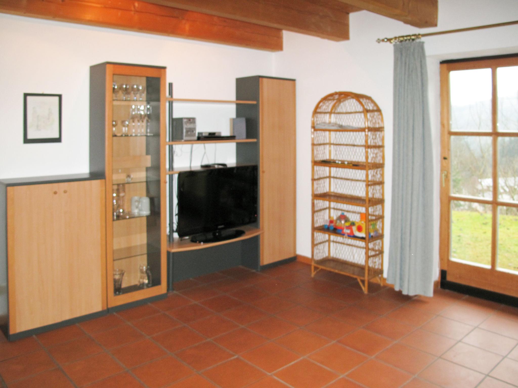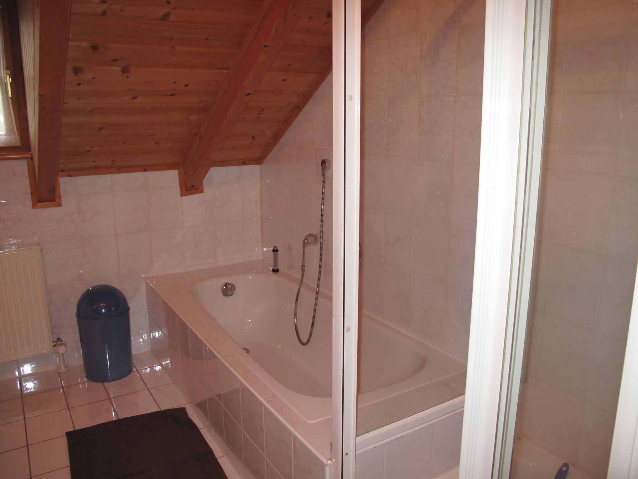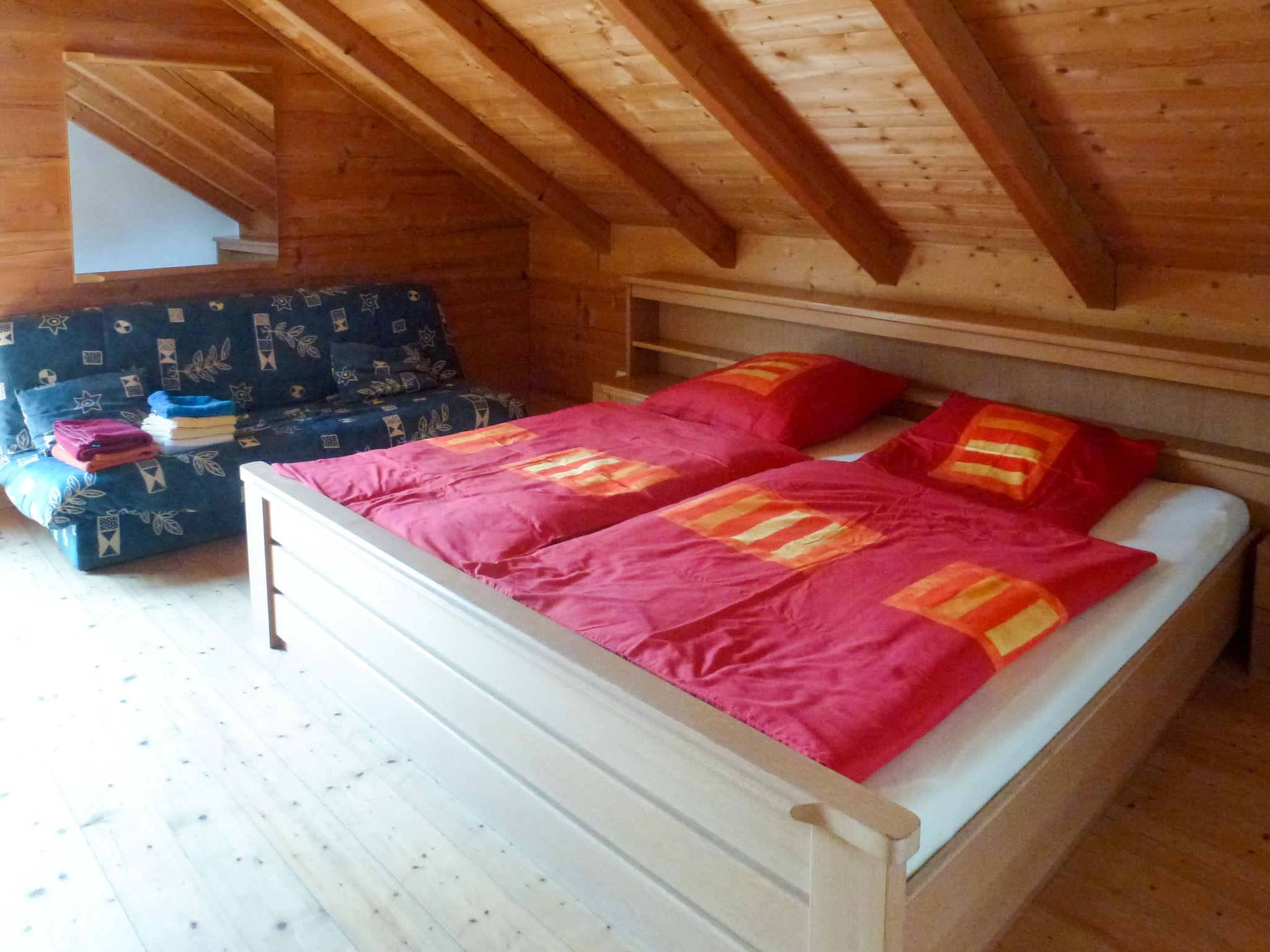4-Zimmer-Haus 140 m2 auf 2 Stockwerken. Rustikal und gemütlich eingerichtet: Wohnzimmer mit Schwedenofen, Sat-TV, CD und Stereoanlage. Ausgang zum Garten. Offene Küche (Backofen, Geschirrspüler, Toaster, Wasserkocher, elektrische Kaffeemaschine) mit Essecke. Dusche/WC. Fussbodenheizung. Obergeschoss: 2 abgeschrägte Doppelzimmer. Ausgang zum Balkon. 1 abgeschrägtes Zimmer mit 2 Betten. Bad/Dusche/WC. Ölheizung. Holzdielenboden. Balkon, Terrasse. Terrassenmöbel, Liegestühle, Abstellkammer. Zur Verfügung: Waschmaschine, Kinderhochstuhl, Babybett. Internet (Wireless LAN, gratis). Bitte beachten: Nichtraucher-Haus. Rauchmelder.