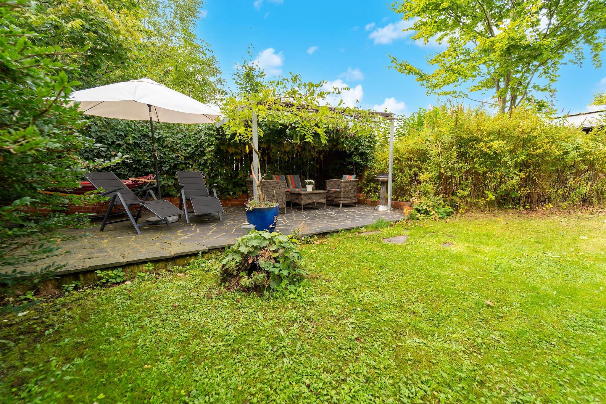 Parterre: (Wohnzimmer(Fußbodenheizung)(Schlafcouch 1 Pers., TV, Kaminofen, Sitzecke), Küche(Wasserkocher, Toaster, Kaffeemaschine, Backofen, Mikrowelle, Spülmaschine, Kühl-/Gefrierkombination), Schlafzimmer(Doppelbett), Schlafzimmer(Doppelbett oder 2 Einzelbetten), Badezimmer(Dusche, Waschbecken, Toilette), Abstellraum(Waschmaschine)) Garten, Gartenmöbel, Grill, Parkplatz, Sonnenschirm