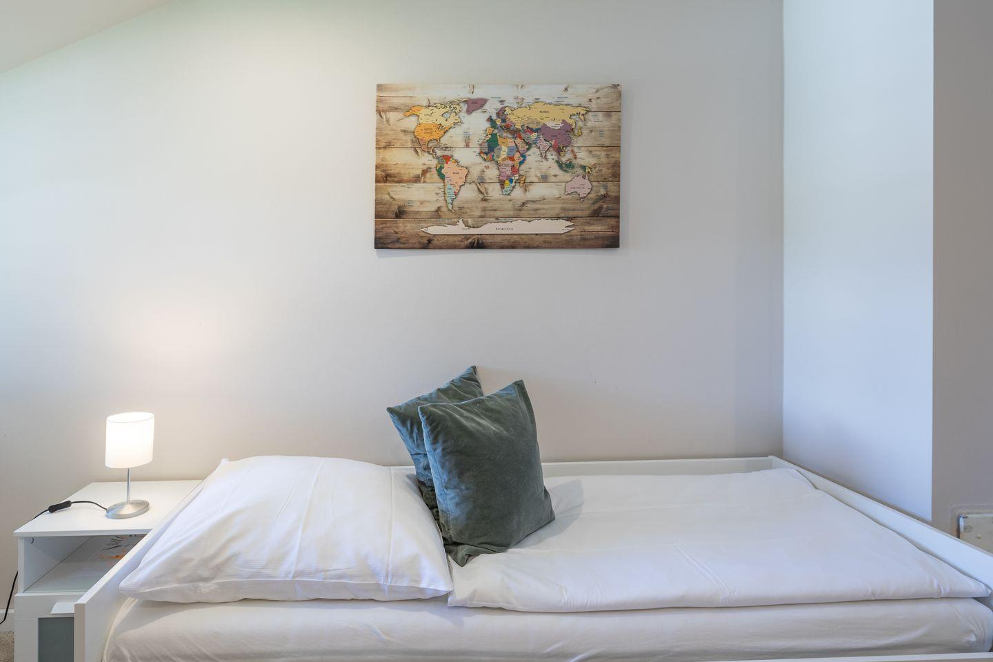 Über eine Treppe erreichen Sie drei weitere Schlafzimmer mit jeweils einem ausziehbaren Kojenbett (160x200) und ein weiteres Duschbad.