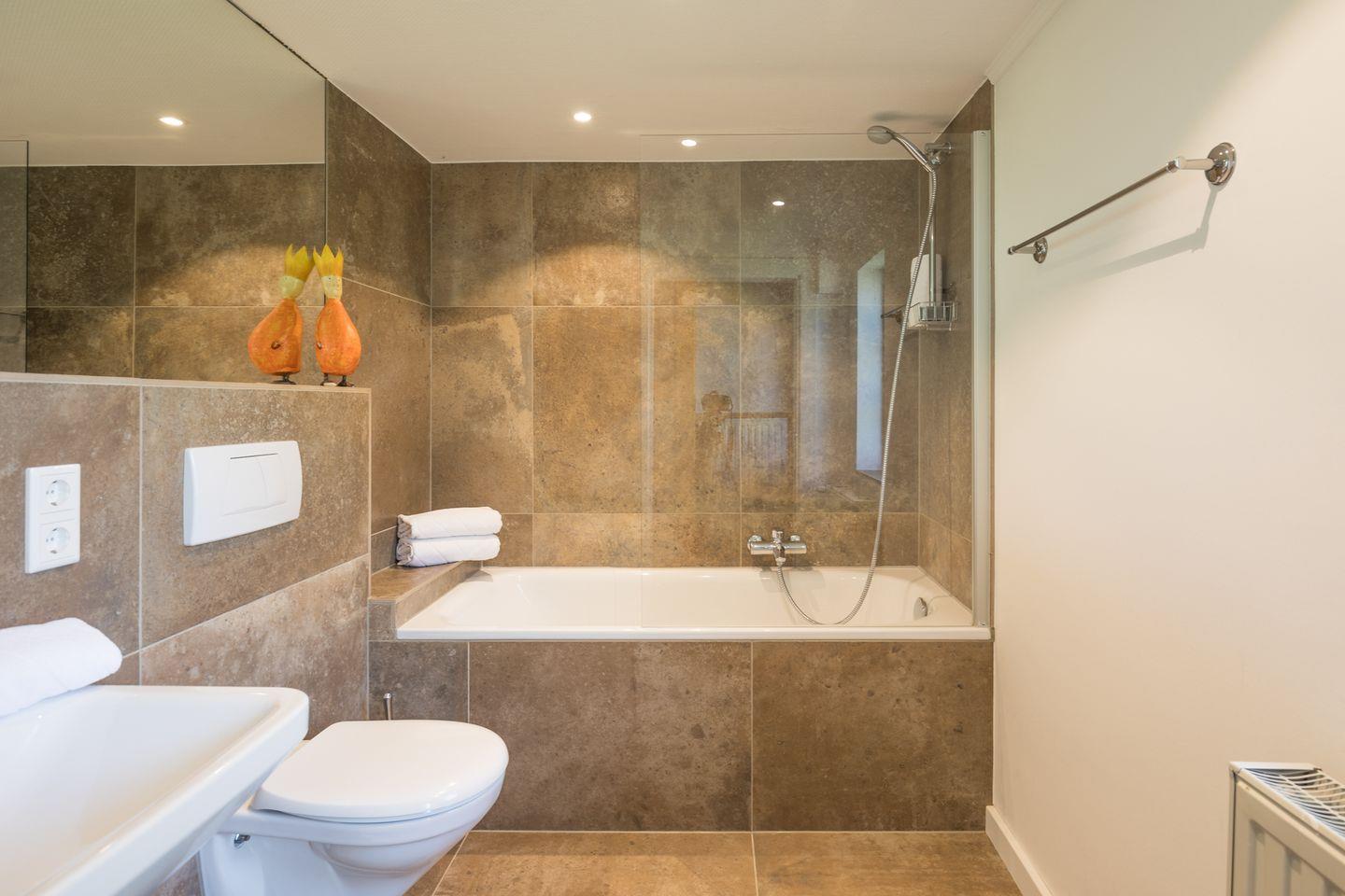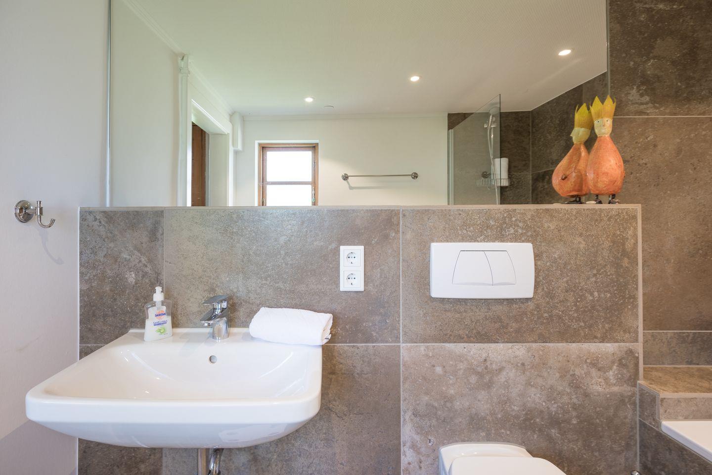 In einem Hauswirtschaftsraum stehen Ihnen Waschmaschine und Trockner und außerdem ein weiterer Kühlschrank mit Gefrierfächern zur Verfügung. Ein Schlafzimmer mit einem Doppelbett (180x200) und auch ein Badezimmer mit Badewanne und Duschvorrichtung befindet sich ebenfalls im EG-Bereich.
