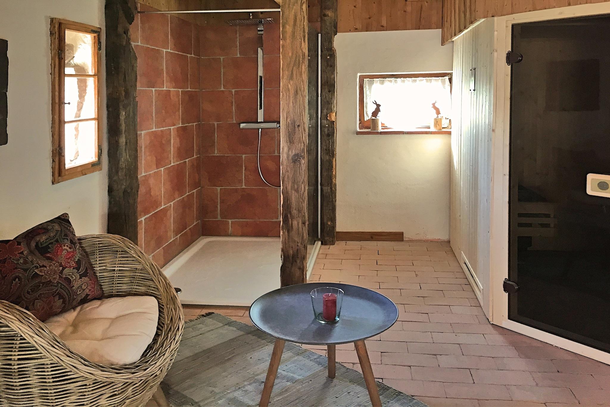 Dieses charmante Ferienhaus – einst ein alter Getreidespeicher – liegt an einem sonnigen Hang im Kleinen Kinzigtal von Reinerzau und bietet eine atemberaubende Aussicht und rustikale Eleganz im Herzen des Schwarzwalds. Mit zwei gemütlichen Schlafzimmern, einem umlaufenden Balkon und einer privaten Terrasse ist das 80 m² große Haus ideal für Paare oder kleine Familien, die Ruhe und Natur suchen. Im Inneren schaffen freiliegende Holzbalken und ein Kachelofen eine warme, einladende Atmosphäre. Das Haus verfügt über eine Sauna mit Dusche und Ruheraum, und Kinder werden die Spielgeräte im Freien lieben. In der Nähe finden Gäste einen Badesee, einen Stausee, Schwimmbäder, Tennisplätze und einen Golfplatz sowie Zugang zu 200 km Wanderwegen. Zu den beliebtesten Ausflugszielen zählen Schiltach, Wolfach, Hausach, Haslach, das Schwarzwälder Freilichtmuseum, der Europa-Park Rust und Straßburg. Bitte beachten Sie: Das Haus ist nicht barrierefrei.